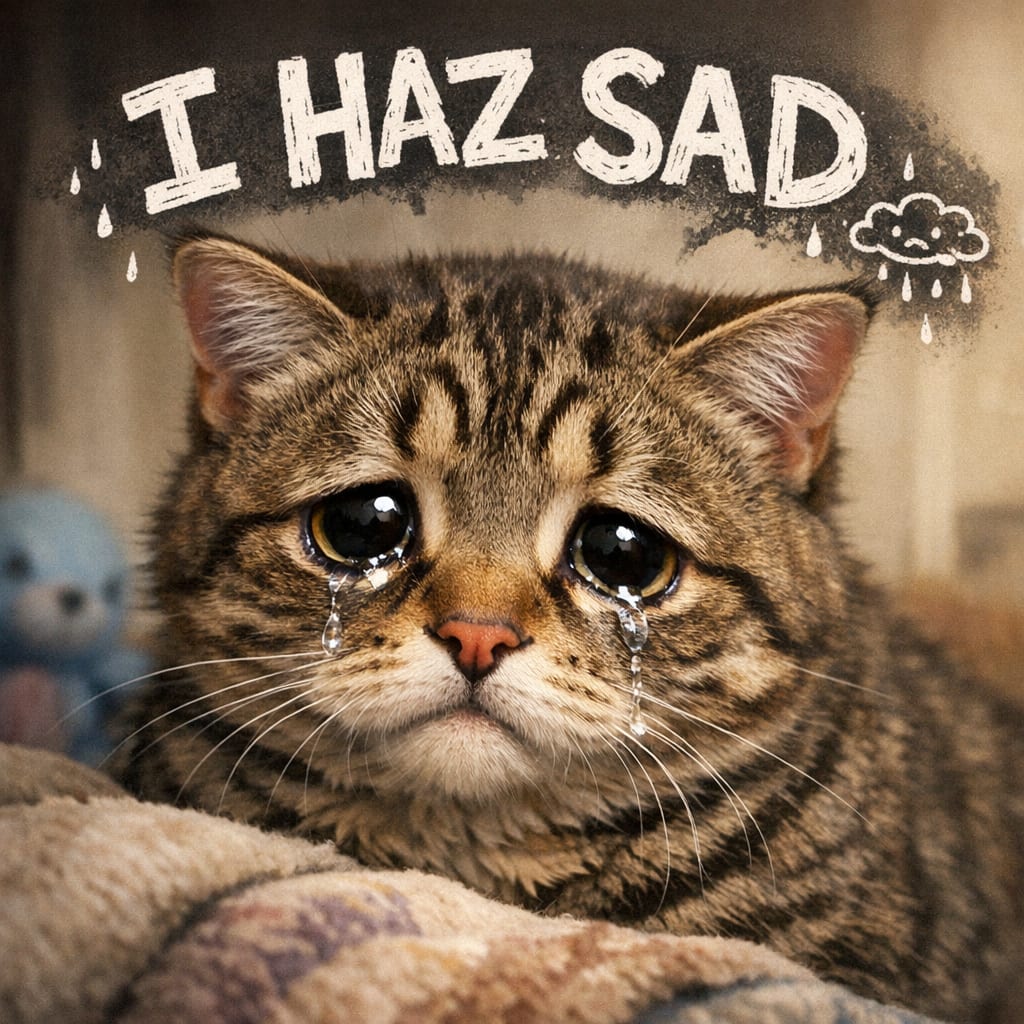@phendrick Here’s the image you requested for “cat saying I HAZ SAD”