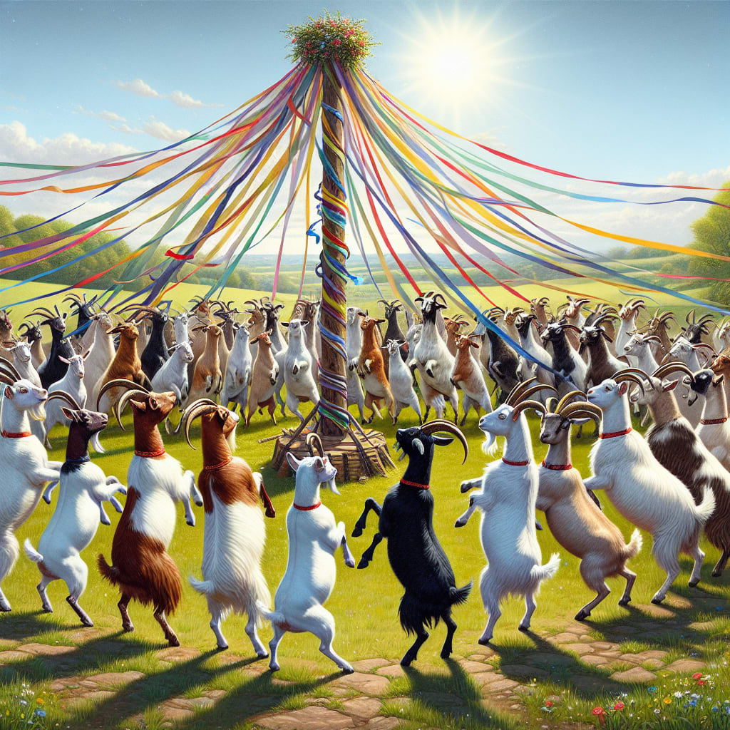 /showme happy goats dancing around the Maypole