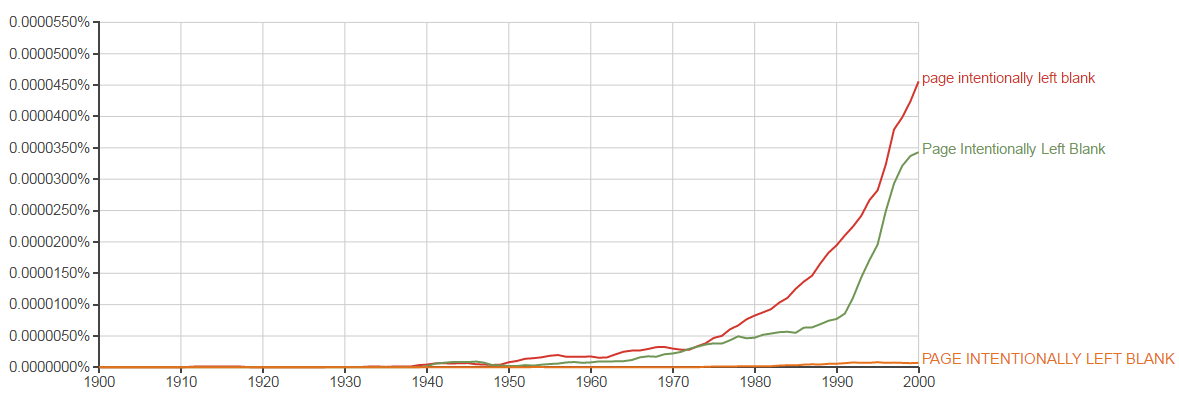 As an Engineer, sometime I have to generate some sort of document that requires a page “Intentionally left blank” due to format or other cover-page-on-the-TPS-report reason. Without exception, I always mark the page “This page accidentally left blank.”