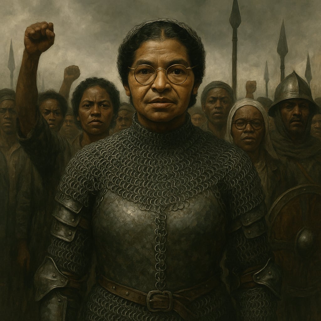 /showme Rosa Parks in badass chainmail backed by an army of supporters