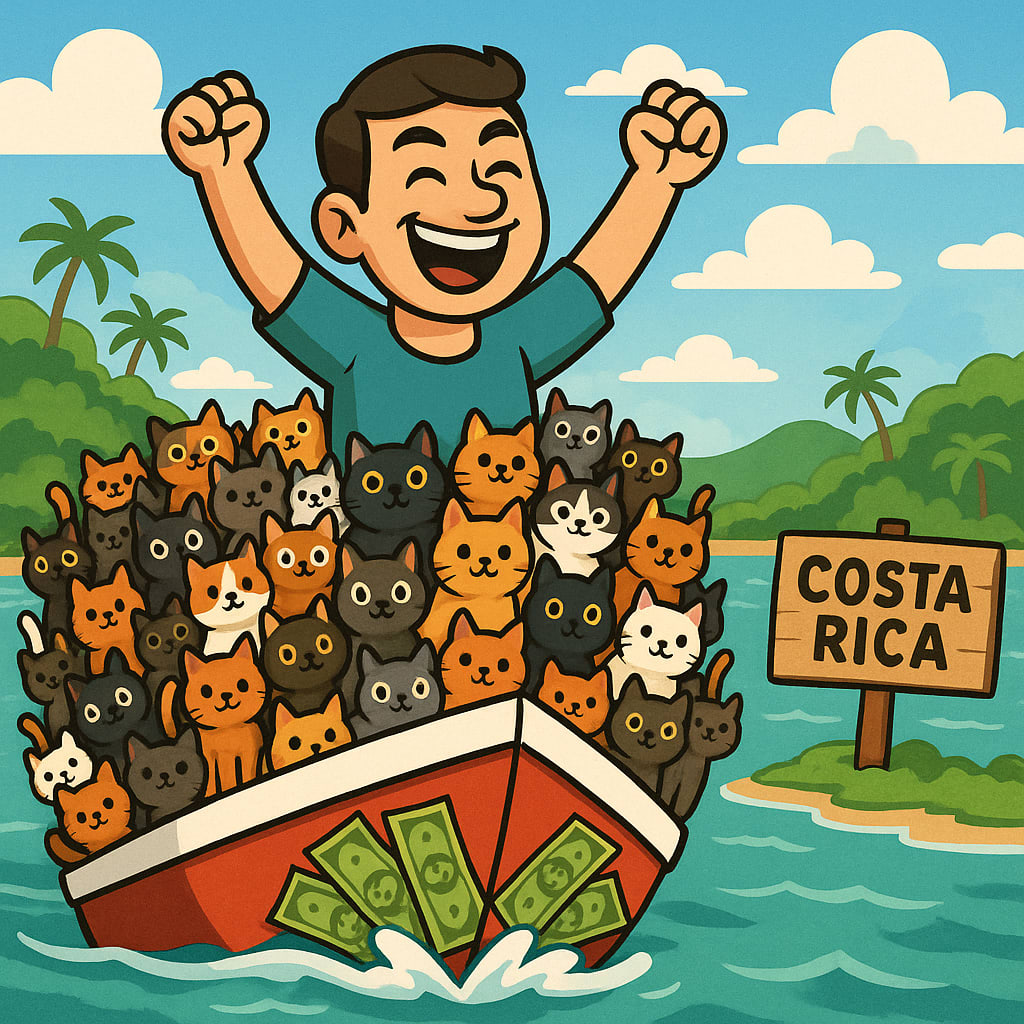 /showme winning the lottery and moving to Costa Rica by boat with 100 cats
