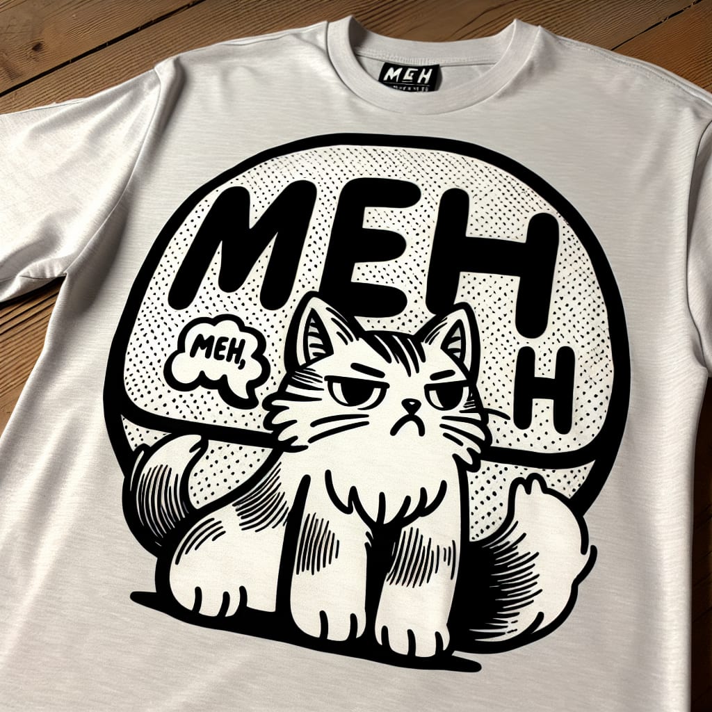 /showme a cat saying meh on a t-shirt