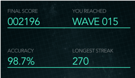 I didn’t get to do it yesterday, but played some today. Best is 2308, wave 18, 94.8%, 193 streak. It’s fun but it gets crazy there. The worst is if you accidentally hit a letter that starts another word (like if you were shooting at the missiles and they went off screen) and you don’t know what word you’re supposed to be typing now. When they get thick in later levels that is what did me in.