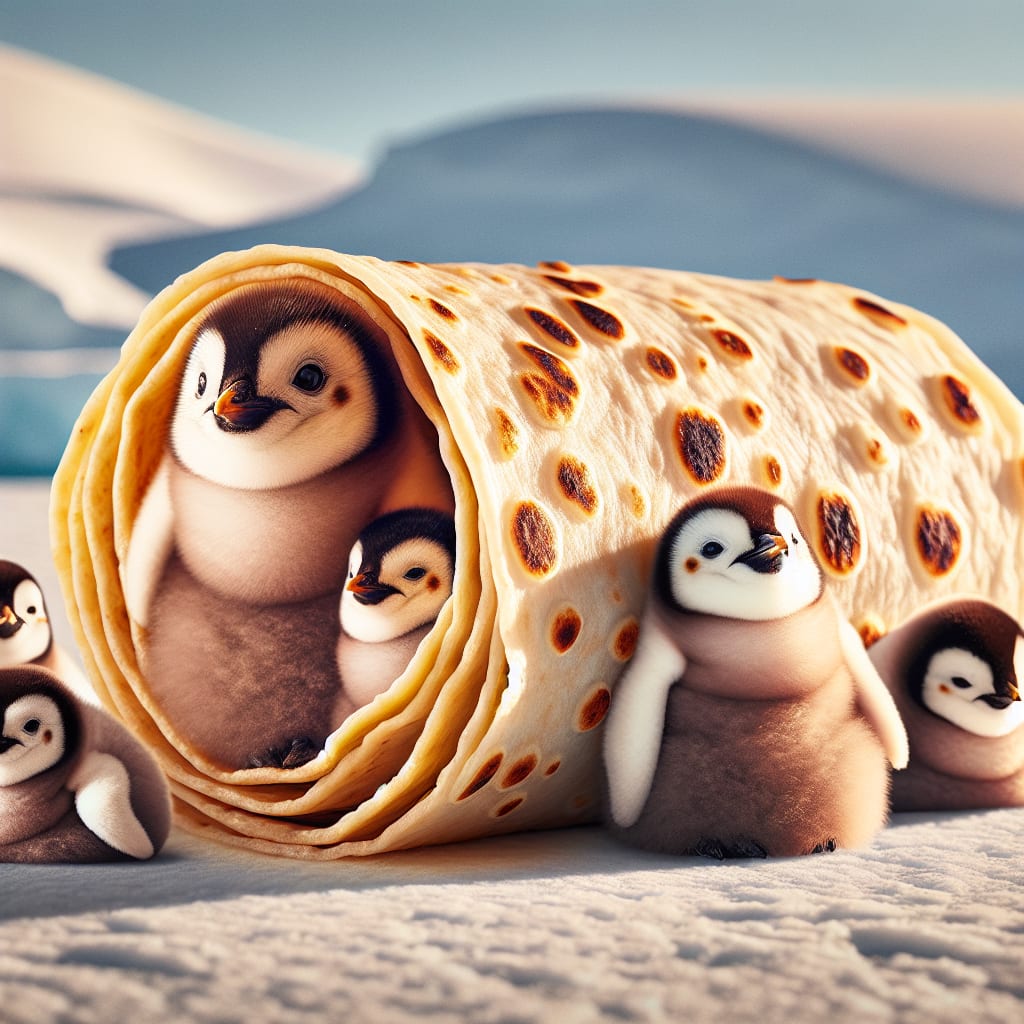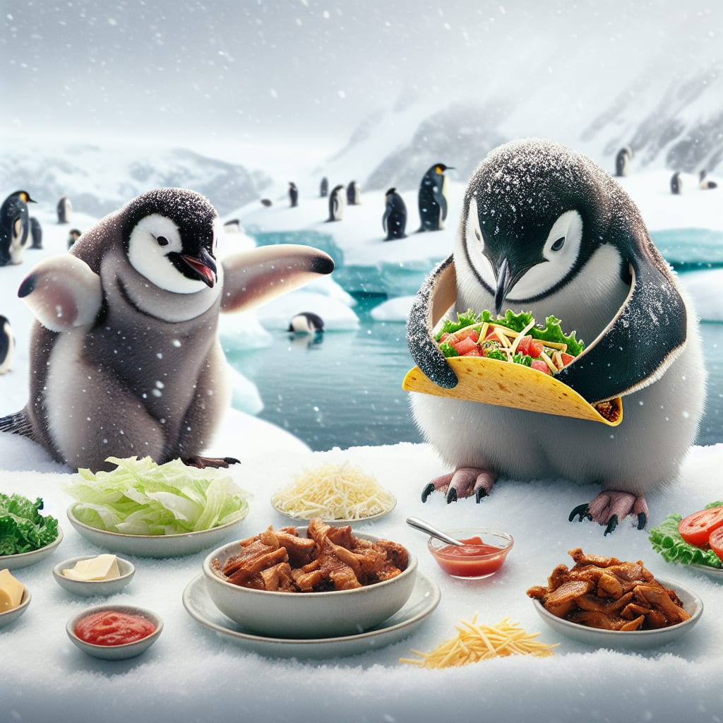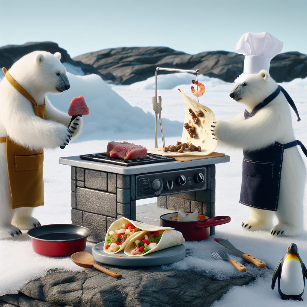 /showme polar bears preparing beef, shrimp, and penguin burritos
