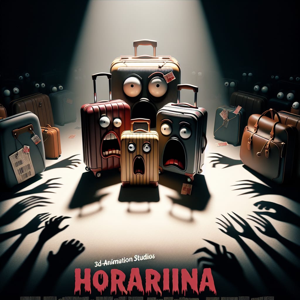 /showme a horror movie poster by Pixar that stars a 3-piece Italian luggage set