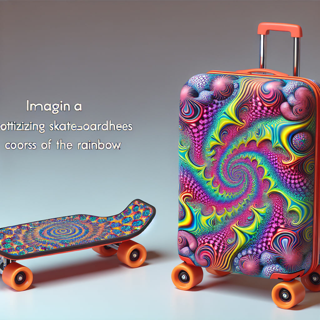/showme fractal rainbow suitcase with skate wheels and a collapsible handle
