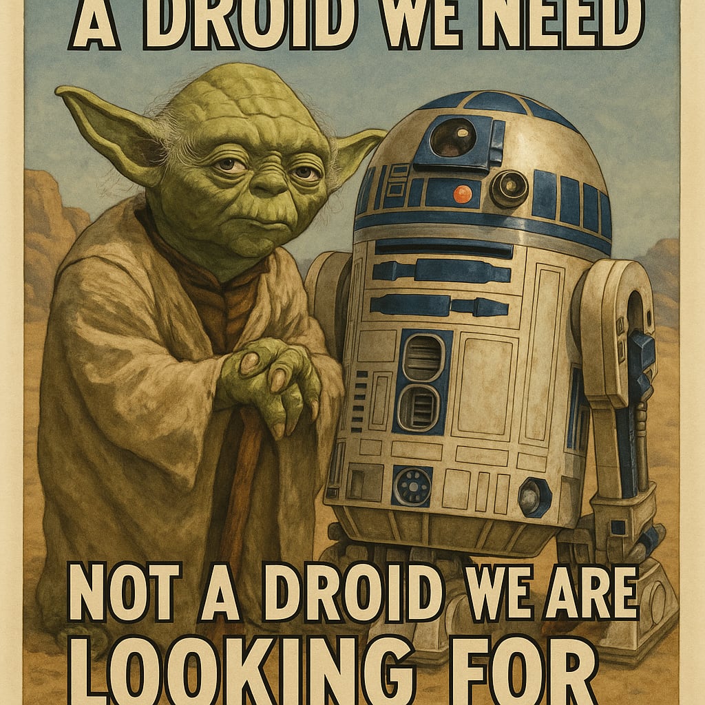 /showme Obi Wan Kenobi in a landspeeder telling stormtroopers these are not the droids you’re looking for.
