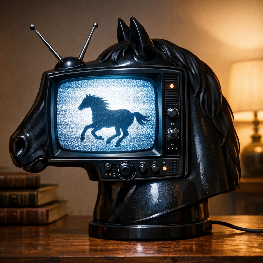 @cfg83 Here’s the image you requested for “A horse head lamp that looks like a TV in profile.”