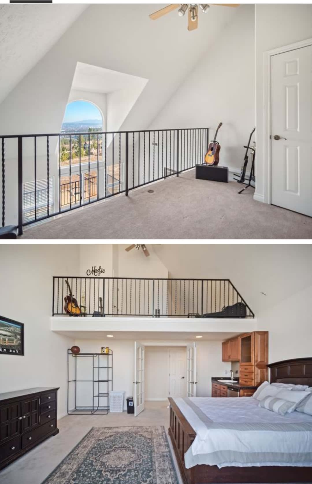 Here’s a gem we found; 6 bedrooms with a dedicated billiard room, movie screening room, fitness center, and gun room… but… let’s just toss the instruments into this weird space above the bedroom.