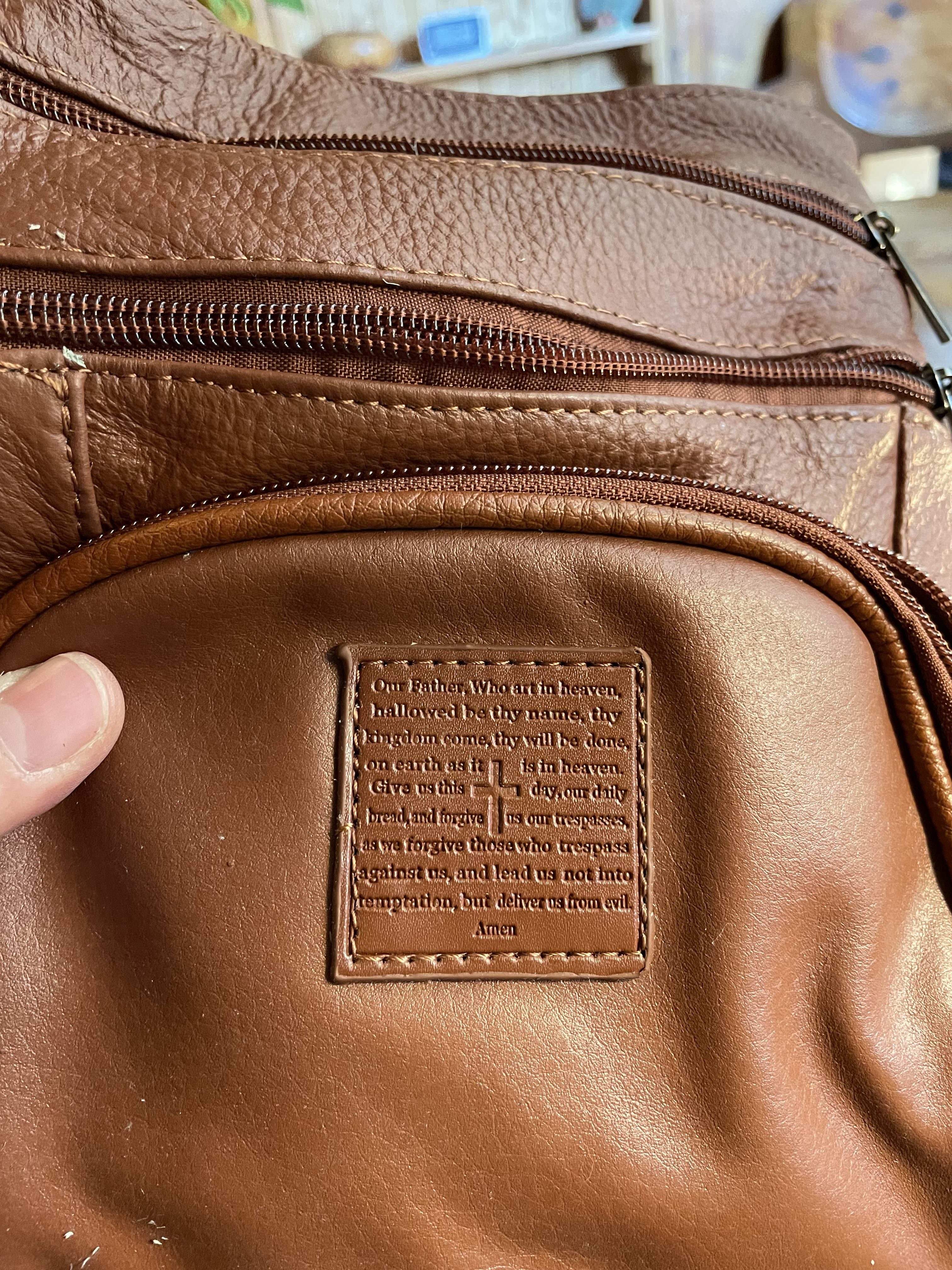 Some people would have affirmatively wanted that one, but I’m not any of them. OTOH, lots of pockets is good. I have a heavy canvas crossbody with lots of pockets, with a really nice embroidered rainbow pentagram-knot on it. A patch that would blend with the leather could be a challenge, but I suspect it’s out there somewhere.