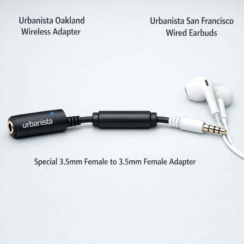 /showme Special double-ended 3.5mm female adapter to connect Urbanista Oakland Wireless Bluetooth Headphone Adapter to Urbanista San Francisco Wired Earbuds.