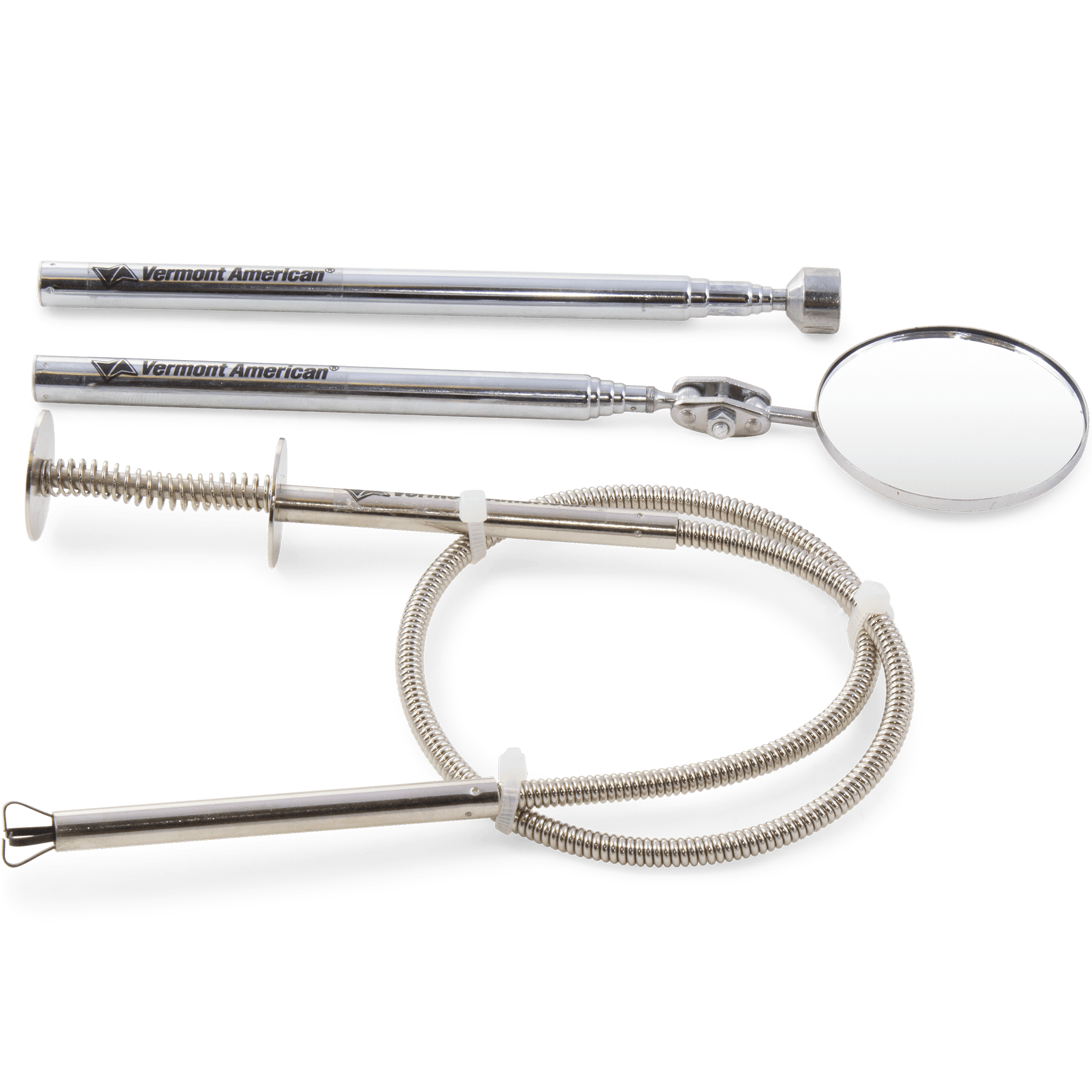 Specs ==== - Model: 012121 - Model: 012122 - Model: 012599 - Model: 014511 - Model: 013476 - Retrieval set includes: 2ft four-claw retrieval tool, 19in extendable pivoting mirror, and 23in magnetic pick-up tool - Screwdriver set includes: 8 dual-sided screwdriver blades, 1 handle - Hex: H 3 - Hex: H 3/16 - Hex: H 4 - Hex: H 7/32 - Hex: H 5 - Hex: H 9/64 - Hex: H 6 - Hex: H 5/32 - Slotted: SL 3/16 - Phillips: PH1 - Slotted: SL 1/4 - Phillips: PH 2 - Square: S 1 - Pozi: PZ 1 - Square: S 2 - Pozi: PZ 2 - Precision Screwdriver Set includes: precision screwdriver, extension bit holder, 21 precision screwdriver bits - Saw is ideal for cutting drywall, wallboard, plywood, or plastic - Blade is 6 inches long - Blade folds out and locks in place - SAE Hex Key Set includes: - 5/64, 3/32, 7/64, 1/8, 9/64, 5/32, 3/16, 7/32, 1/4 in - Metric Hex Key Set includes - 1.5, 2, 2.5, 3, 4, 5, 6, 8 mm- Made in China Condition: New Estimated Delivery: 5/27 - 5/29Warranty: 1 Year Vermont AmericanShipping: $5 or free with VMP What’s in the Box? ==== 1x 23-Piece precision screwdriver set 1x Folding Saw 1x SAE hex key set 1x Metric hex key set 1x 9-Piece interchangeable blade screwdriver set 1x 3-Piece retrieval set Pictures ==== The tools 9 Piece screwdriver set Retrieval set Hex key sets Saw Precision set Rubik’s cube also not included