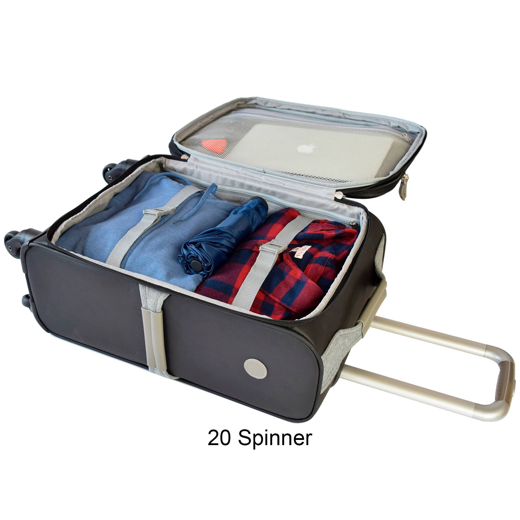 Specs ====- Condition: New||20 inch|24 inch|25 inch||—|—|—|—|—||Model: |50069042| 50068786|50068912||Closure Type: |Zip Closure|Zip Closure|Zip Closure||Luggage Style: |Carry-on, Spinner, Rolling|Spinner, Rolling|Rolling, Softside||Exterior Features: |Rolling, Adjustable Handle, Spinner Wheel(s), Expandable, Front Zip Pocket, Top Carrying Handle, Multiple Compartments|Rolling, Adjustable Handle, Spinner Wheel(s), Expandable, Front Zip Pocket, Top Carrying Handle, Multiple Compartments|Rolling, Adjustable Handle, Front Zip Pocket, Top Carrying Handle, Padded Handle, Multiple Compartments||Interior Features: |Lined, Mesh Pocket, Side Pockets, Adjustable Straps|Lined, Mesh Pocket, Side Pockets, Adjustable Straps|Lined, Side Pockets||Bag Shell Type: |Softside shell|Softside shell|Softside shell||Handle Type: |Telescoping Handle, Grab Handle|Telescoping Handle, Grab Handle|Telescoping Handle, Grab Handle||Shell Material: |Polyester|Polyester|Polyester||Handle Material: |Aluminum|Aluminum|Aluminum||Dimensions: |20 inches H x 14 inches W x 10 inches D|24 inches H x 16 inches W x 11 inches D|12 inches H x 25 inches W x 12 inches D||Weight: |6 pounds|6 pounds|4 pounds||Bag Linear Inches: |44 linear inches|51 linear inches|49 linear inches|What’s in the Box? ====1x Luggage bagPictures====20 inch20 inch handle20 inch inside20 inch back20 inch wheels24 inch 24 inch handle24 inch inside24 inch wheels24 inch handle25 inch side25 inch25 inch handle25 inch inside25 inch laid outPrice Comparison====20" luggage: $99.99 at Target24" luggage: $119.99 at Target25" duffel: $89.99 at Target