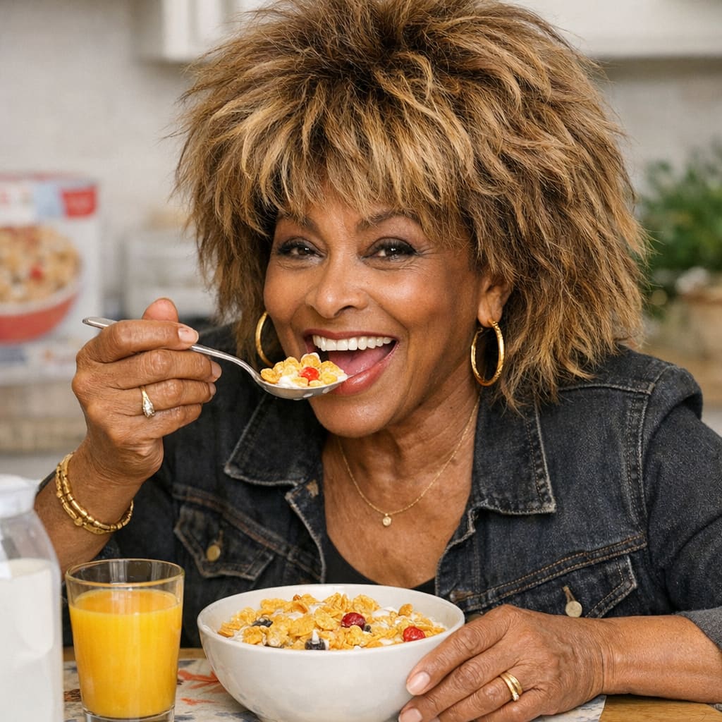 /showme Tina Turner eating a bowl of cereal.