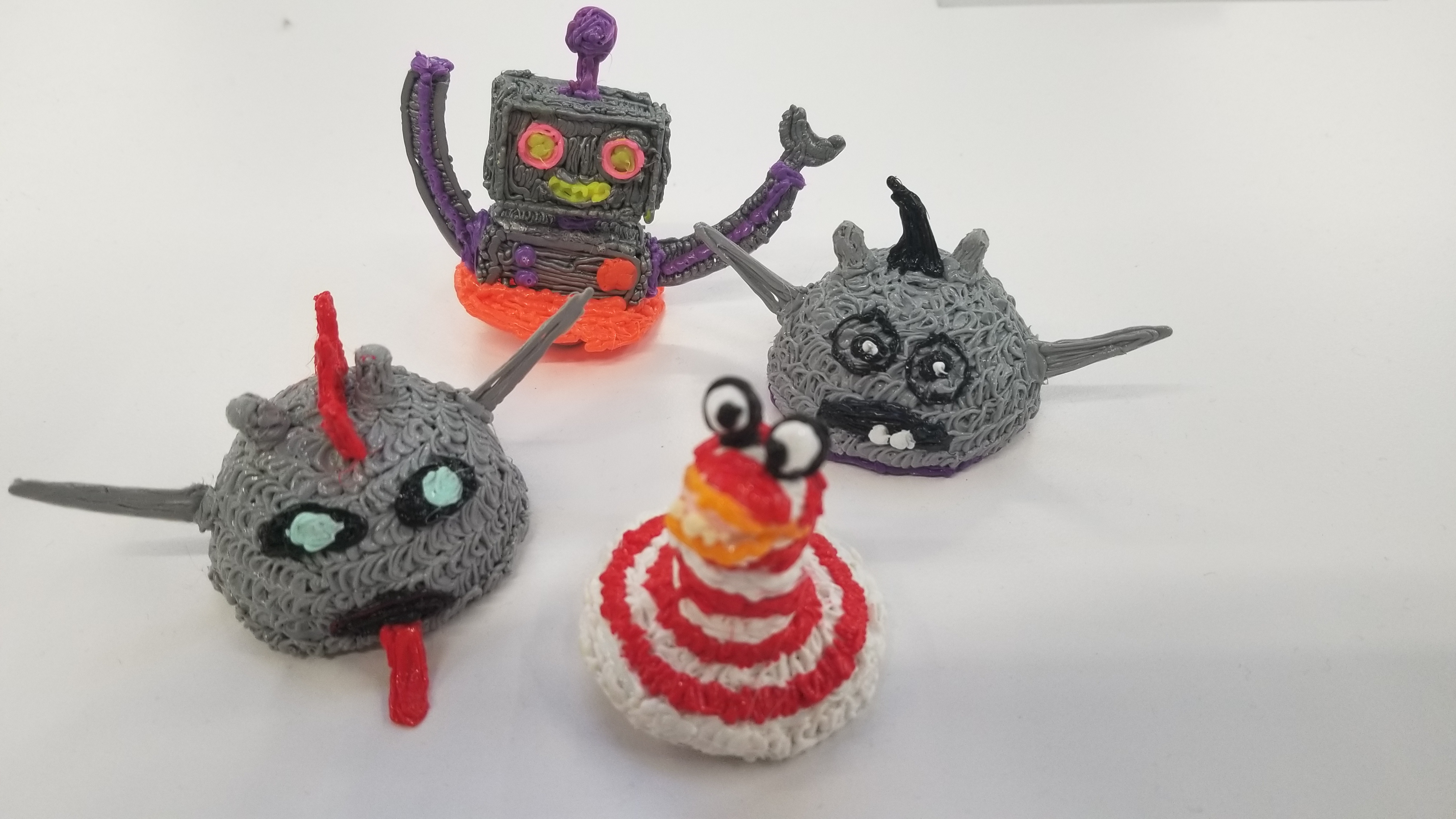 Mediocrebot had another hand that was holding a knife but it broke off in shipping. I copied the idea from the 3Doodler people- it was a lot of fun. I have a Santa I run around the kitchen in December.
