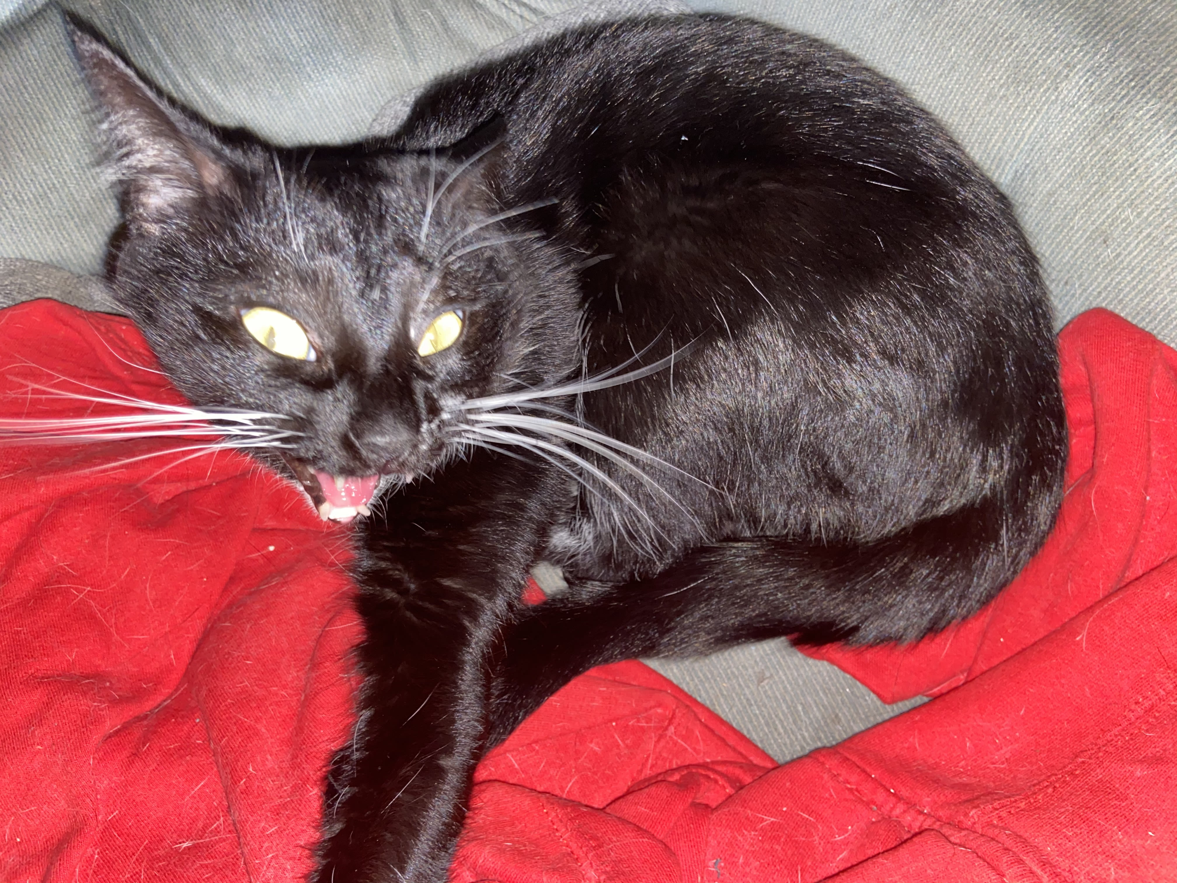 yekoP doing his best imitation of a furry pillow. That’s his head buried into the back of the couch.
