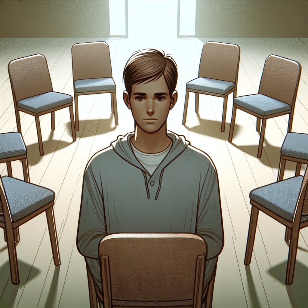 /showme guy named Sam sitting in chair next to 11 other people sitting in chairs arranged in a circle.