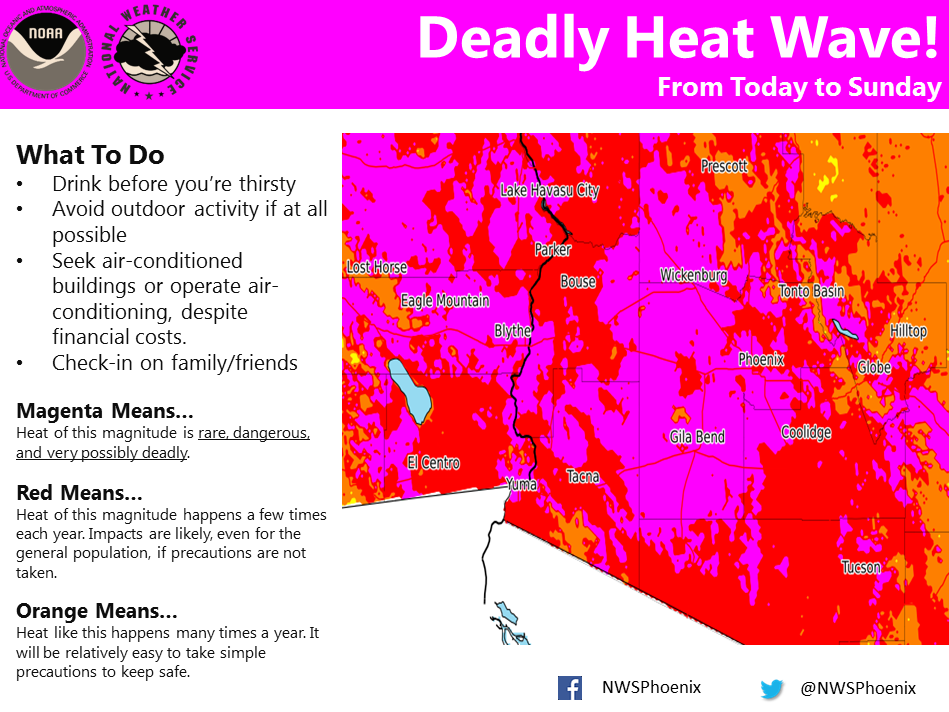 @f00l It’s actually going to be pretty pleasant here for the next week or two. Highs hovering around 111* with only a couple of days expected to go to 115*.