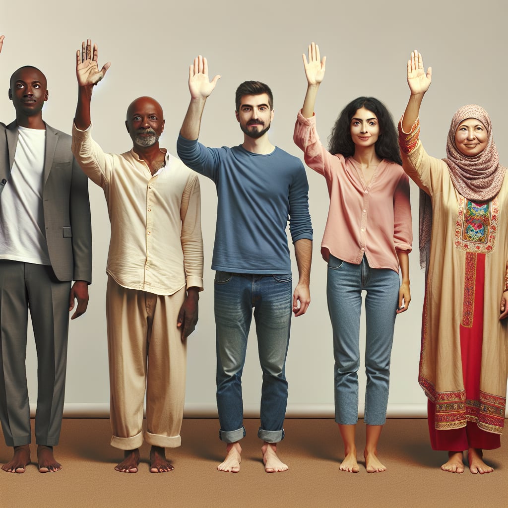 /showme 5 people holding up their hands and they have bare feet