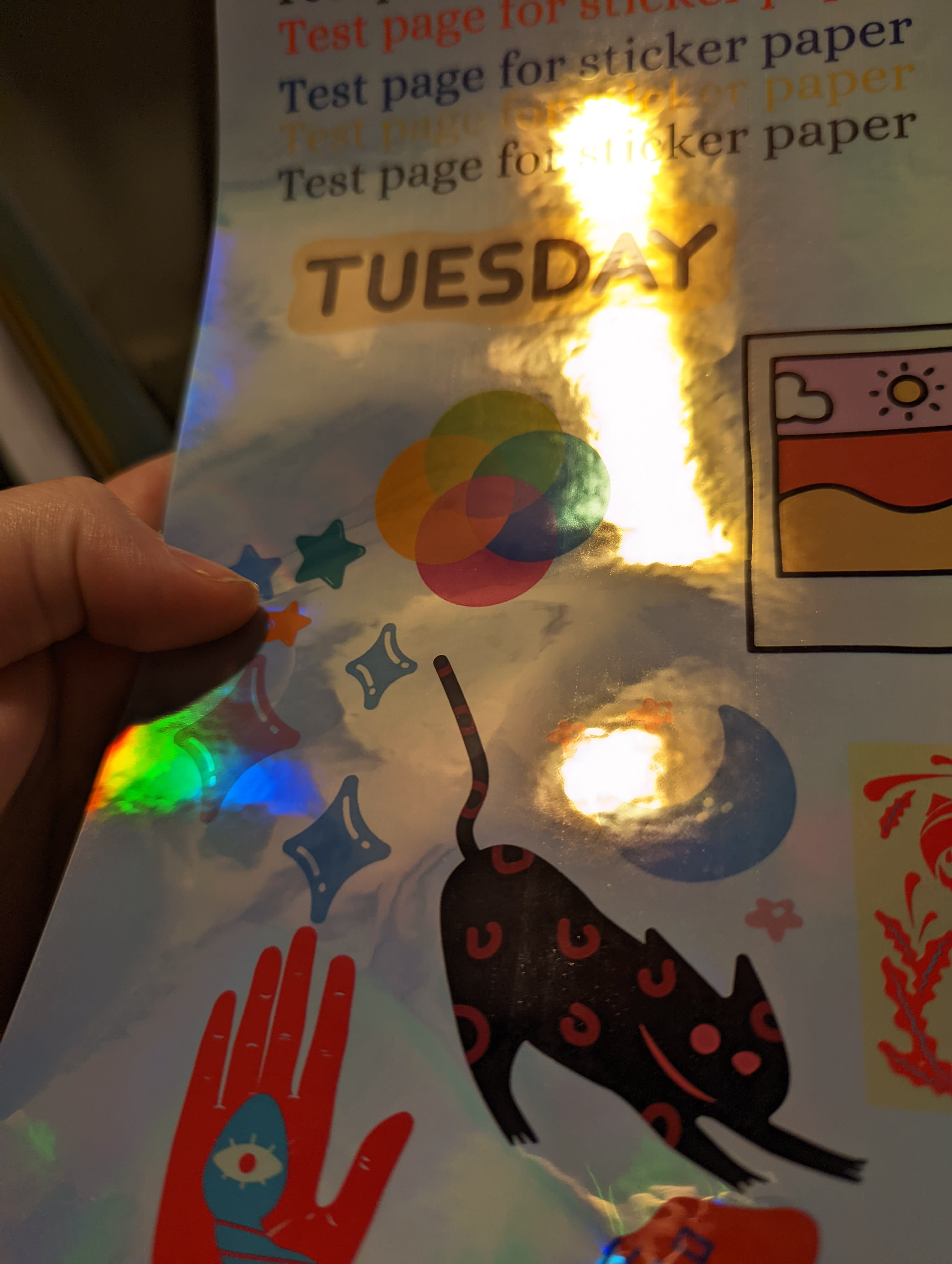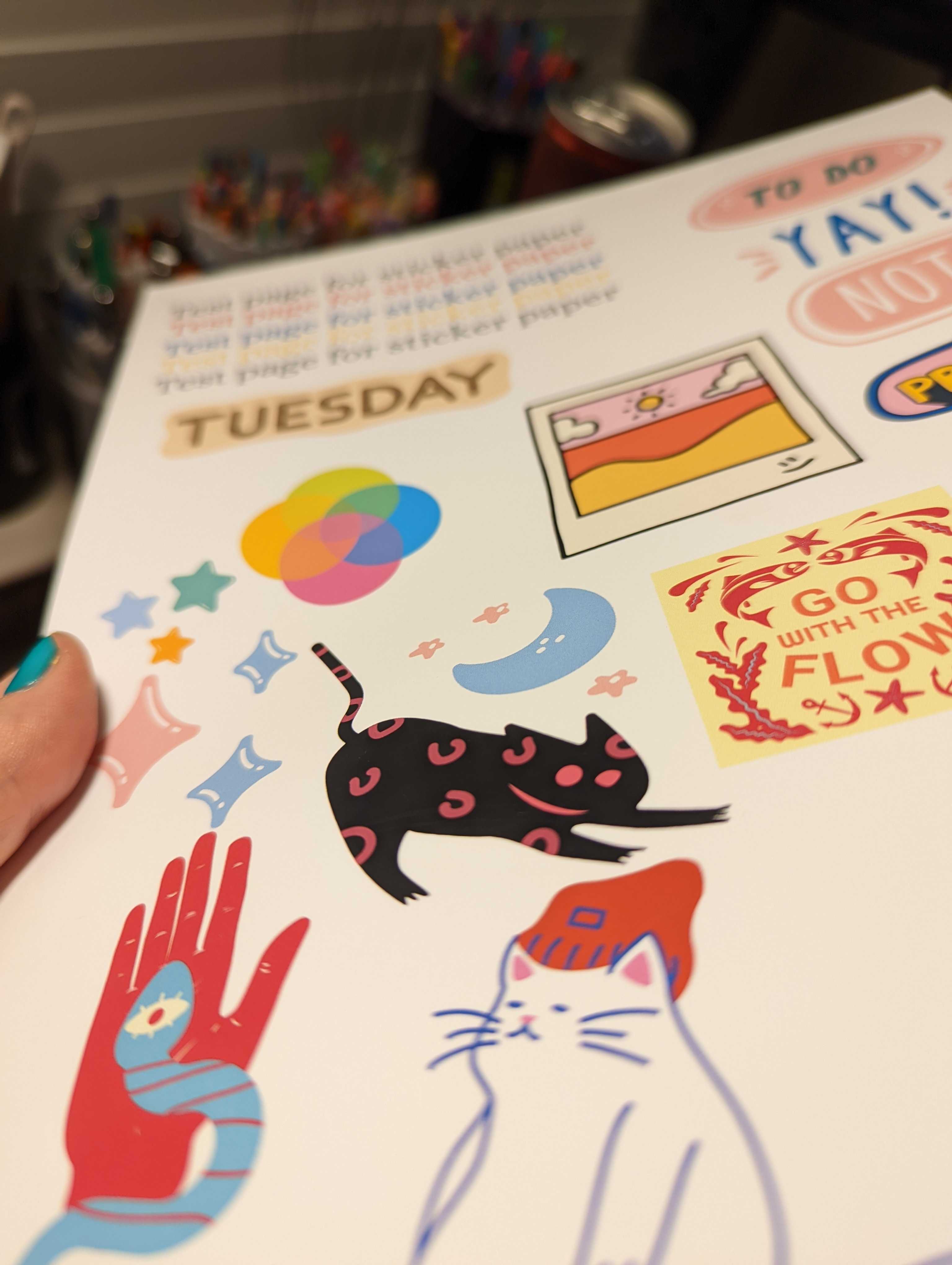 Also playing around with stickers and different papers for a new printer–been having fun with that lately.