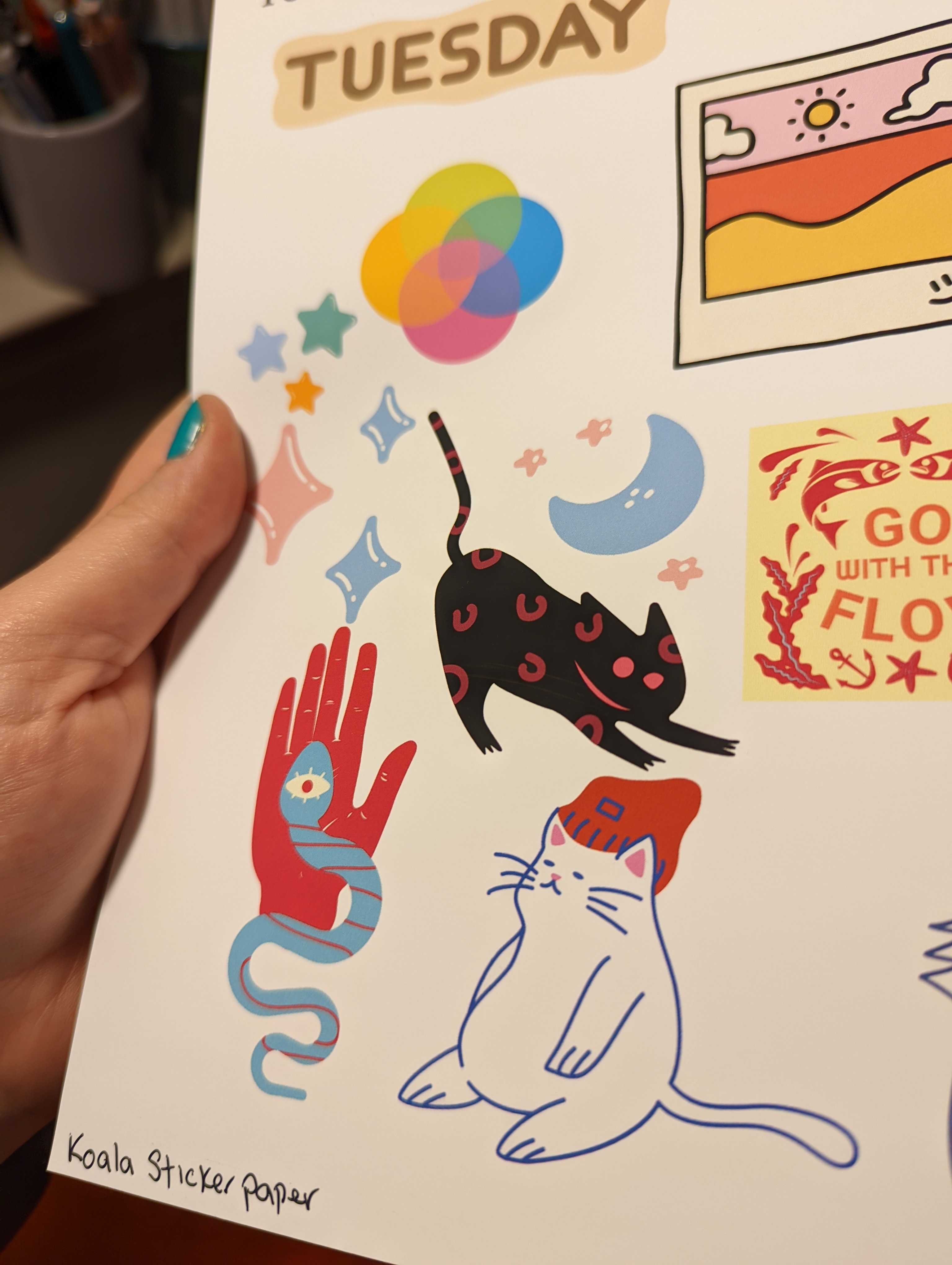 So right now I’m still new at this, but my favorite paper is currently Koala, it’s a white matte vinyl. I’ve been using Canva for the time being until I can work on my own stuff to print.