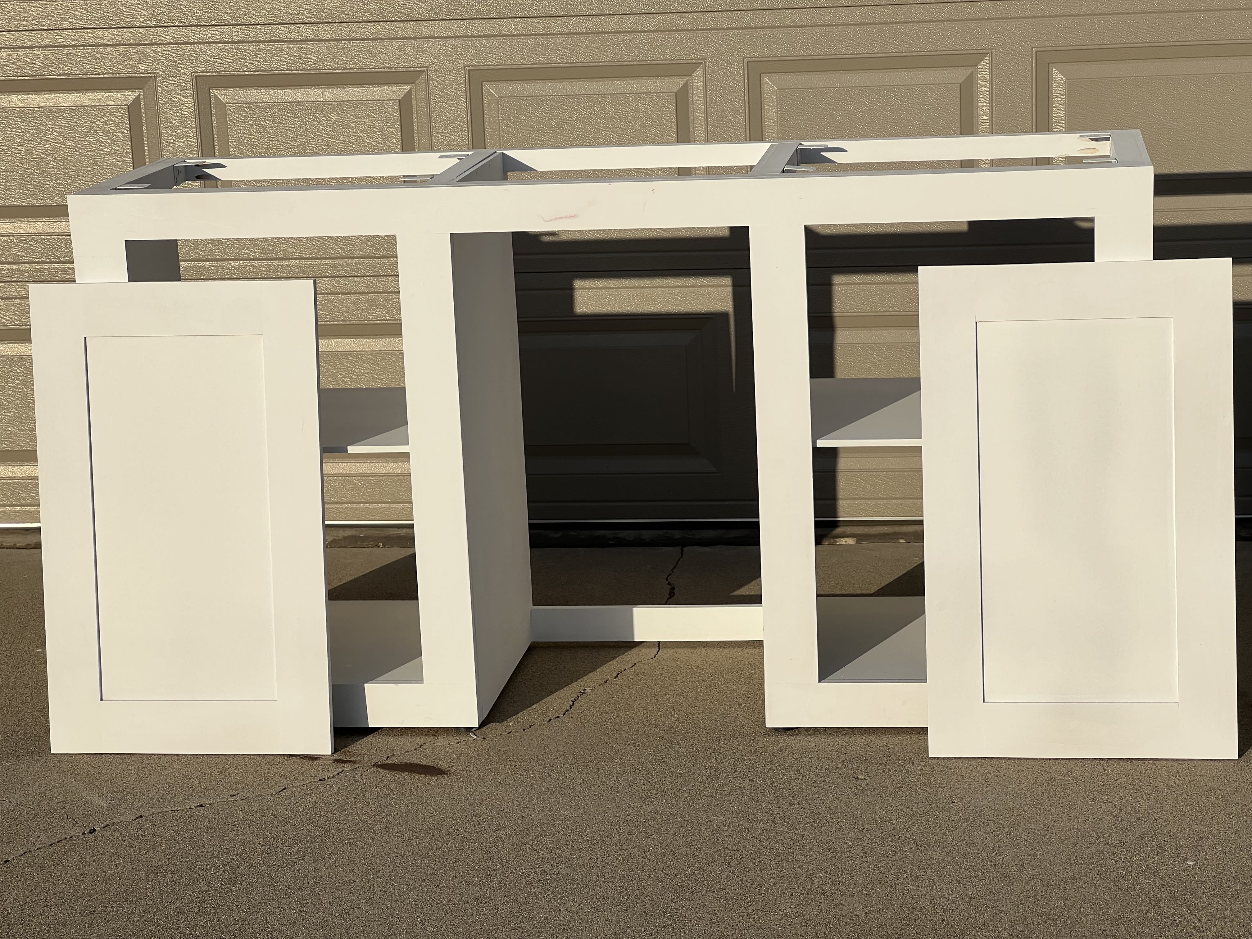 All primed up, wife needs to pick a color and then we’ll paint it. Cabinet doors on the ends and a mini fridge will go in the center with a butcher block bar top.