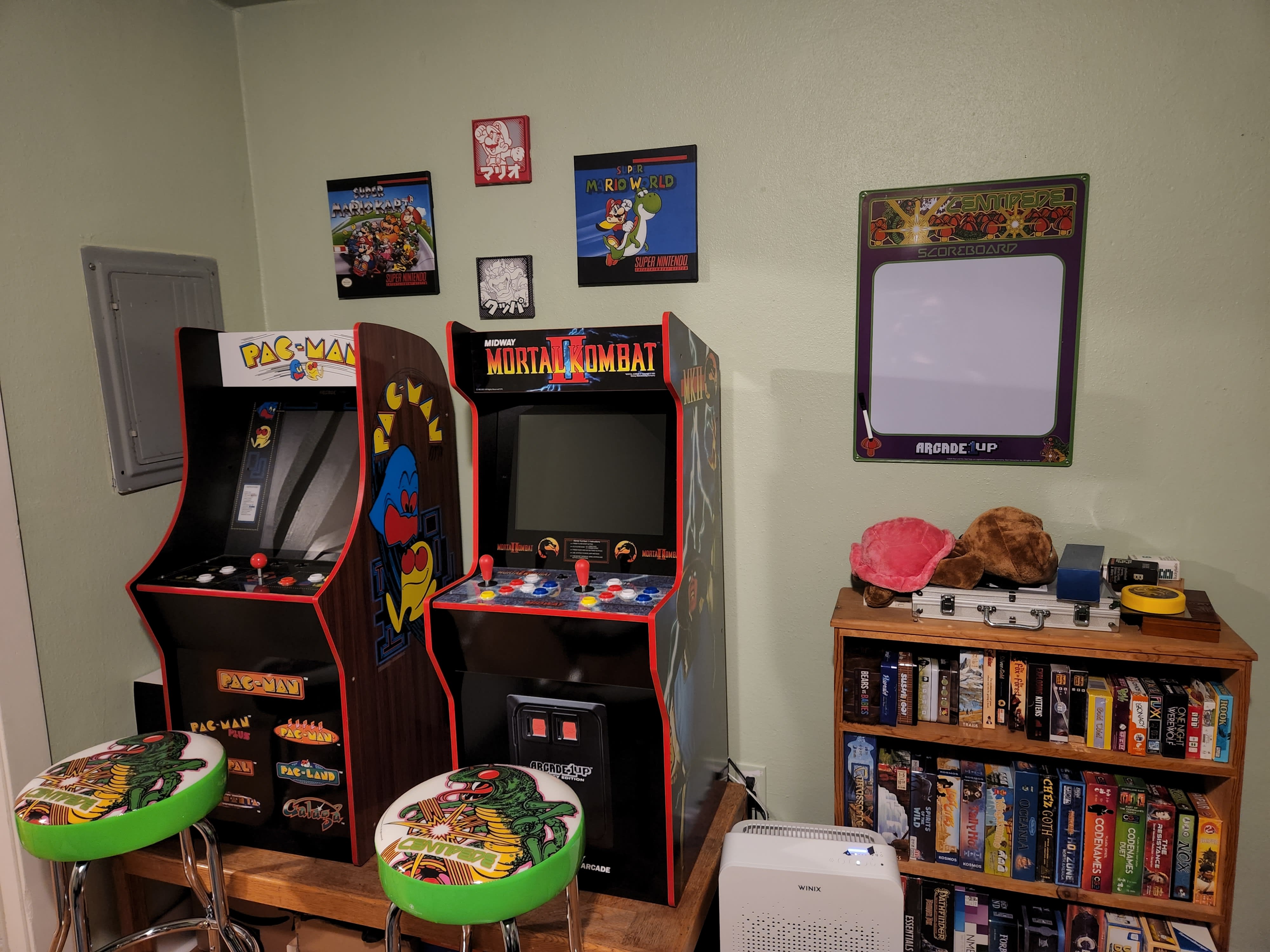 After leaving MK and the stools sitting in boxes for months, I finally got around to setting up an arcade corner.