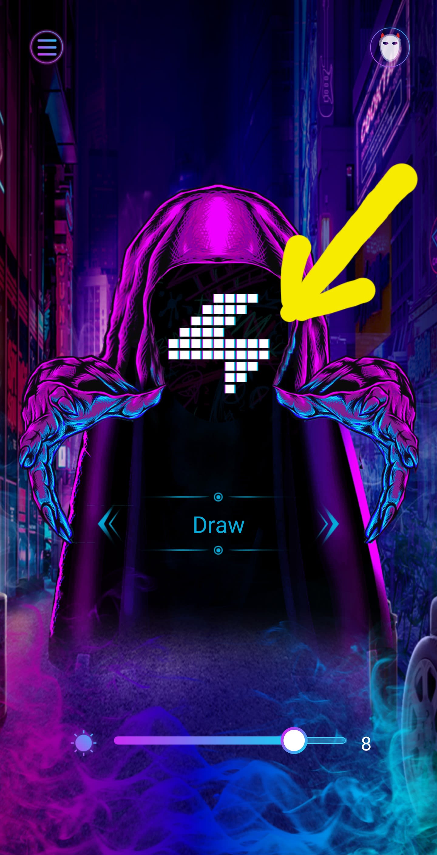 In case you haven’t figured it out yet, you can create custom masks by scrolling through this screen. You can also see history and delete ones you don’t like. You can draw, upload pictures, take pictures and write text. On my android phone I did have to hold it sideways to get the control buttons on the bottom to show.