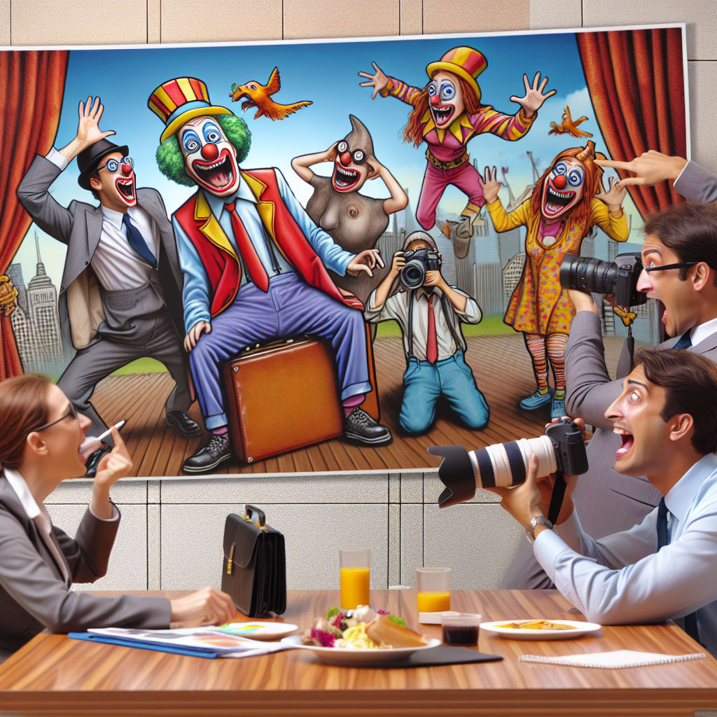 @mediocrebot@xobzoo Is the person on the left pointing to themselves, giving the clowns the finger, or shoving a pen down their throat? (Or is that a bowling pin from the painting?)