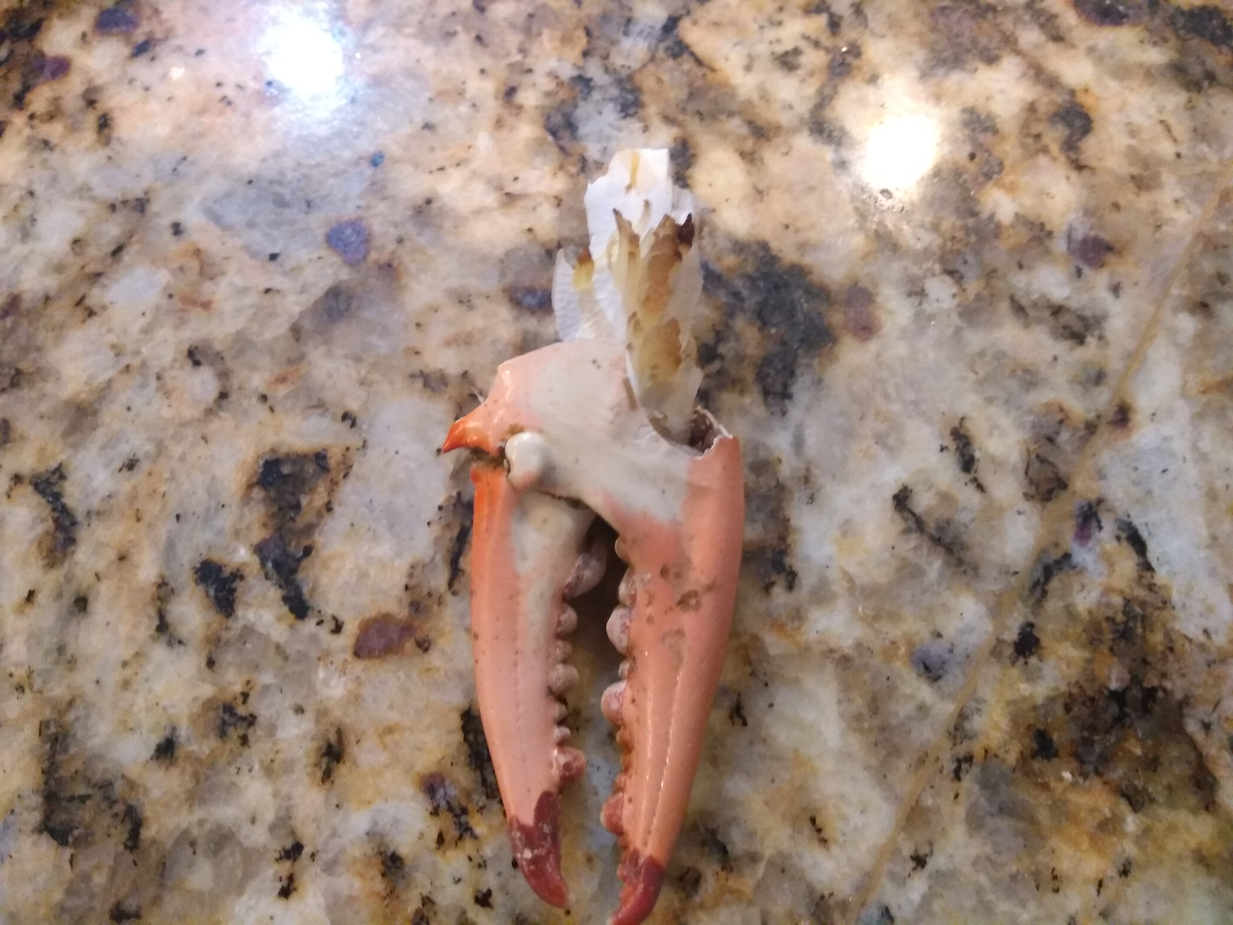 [1]: Here is what a blue crab claw looks like after Walter gets through with it.
