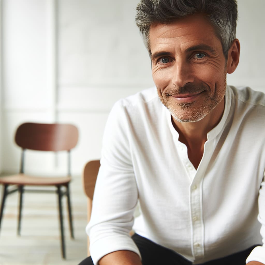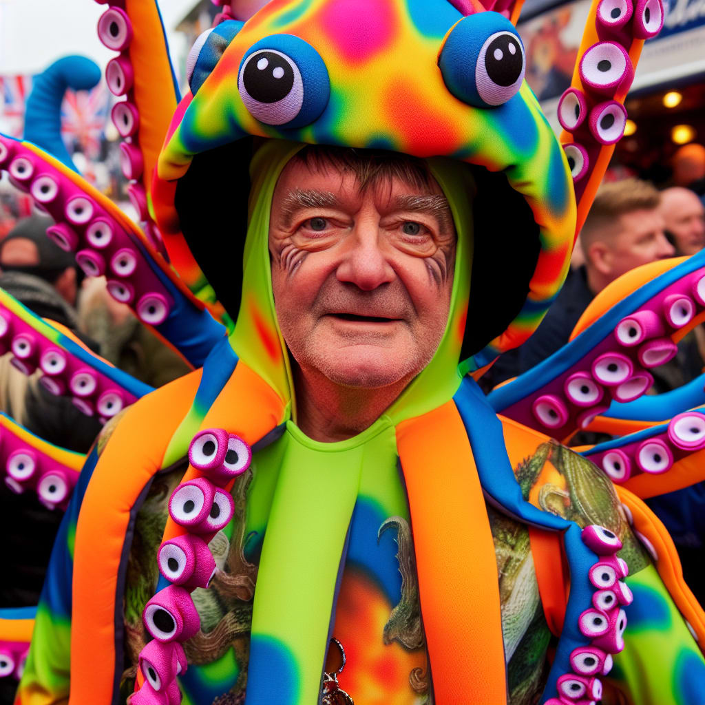 Picture a Balding Peter Griffin, with a Mostly White Goatee…
