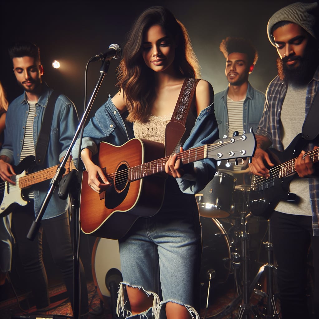 /showme K4evryng with an acoustic guitar singing in a band of handsome men