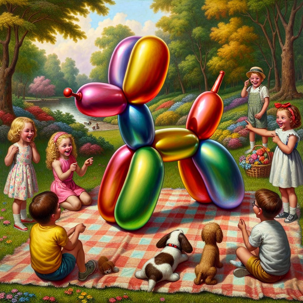 /showme Heartny as a balloon dog in the style of Norman Rockwell