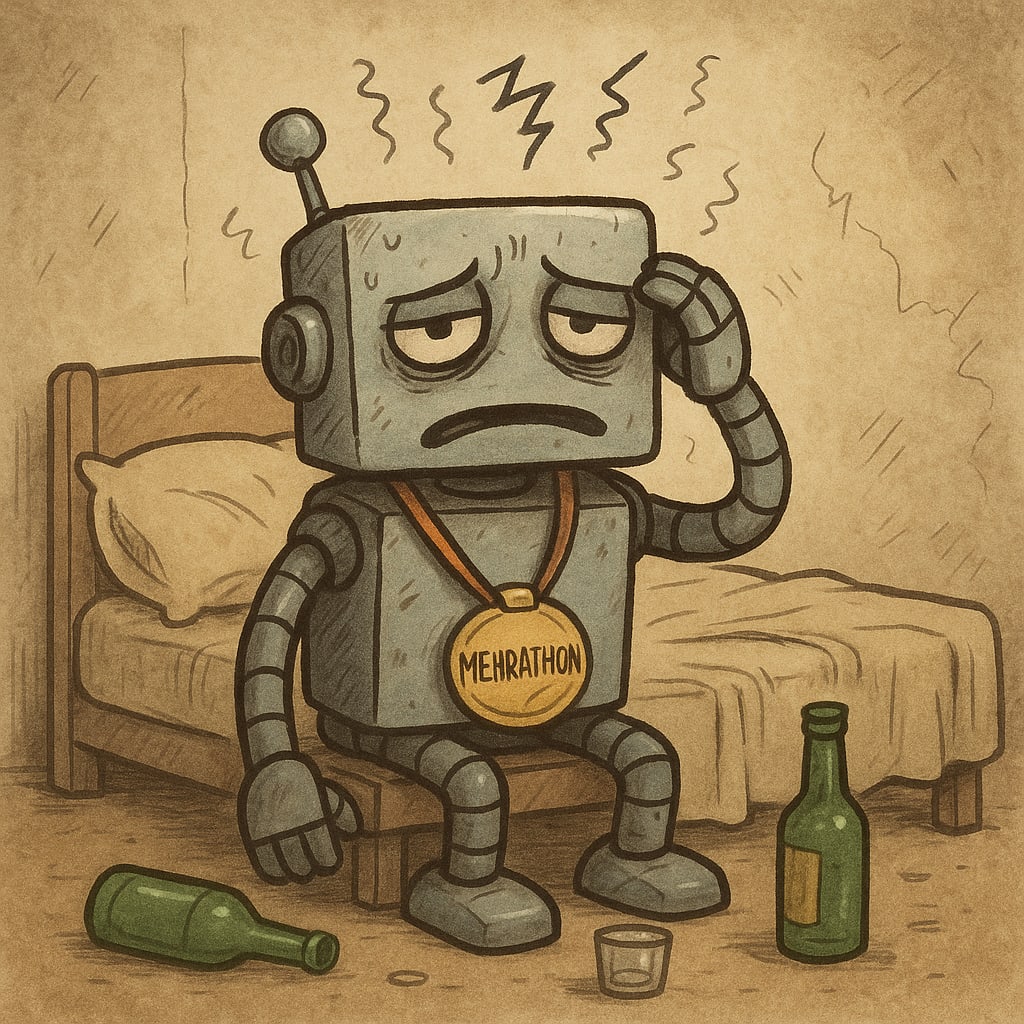 /showme mediocrebot waking up with a hangover after a mehrathon party