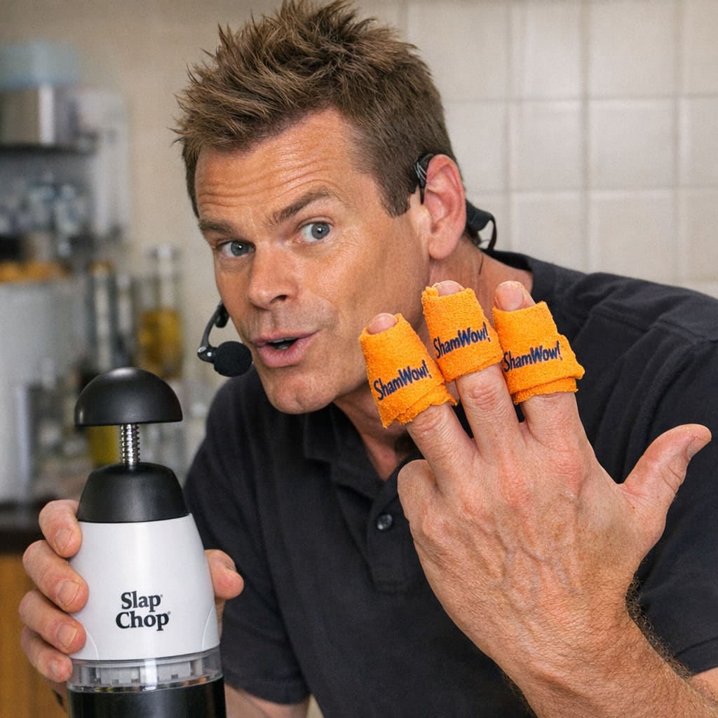 @cfg83 Here’s the image you requested for “Slap chop user using shamwow as bandage for fingers.”