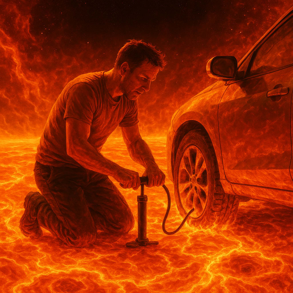 @ddbelyea /showme man trying to inflate a car tire while on the surface of the sun