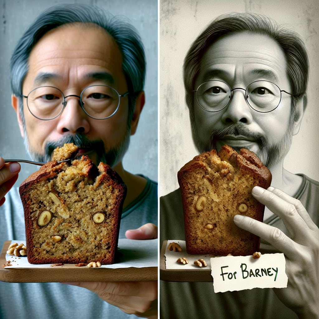 /showme what banana bread made by @jouest might look like. Also, show @ignorant taste testing it to make sure it is edible for @Barney.