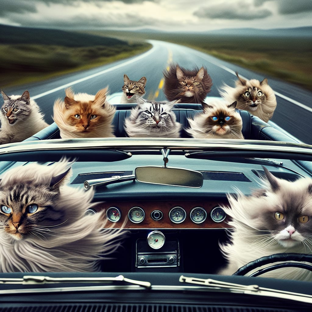 /showme cats in a car hanging on at 80 mph.