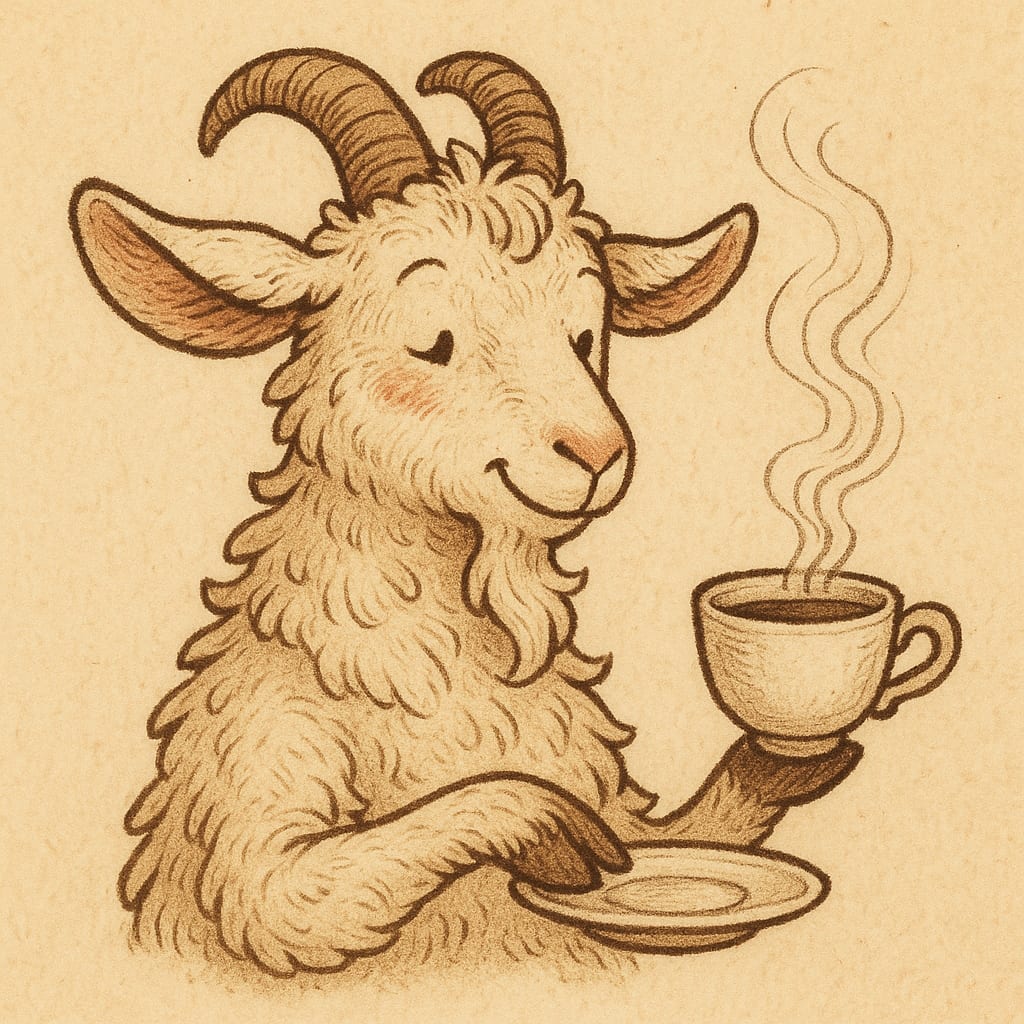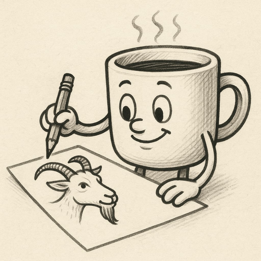 /showme anthropomorphized cup drawing a goat with a goatee.