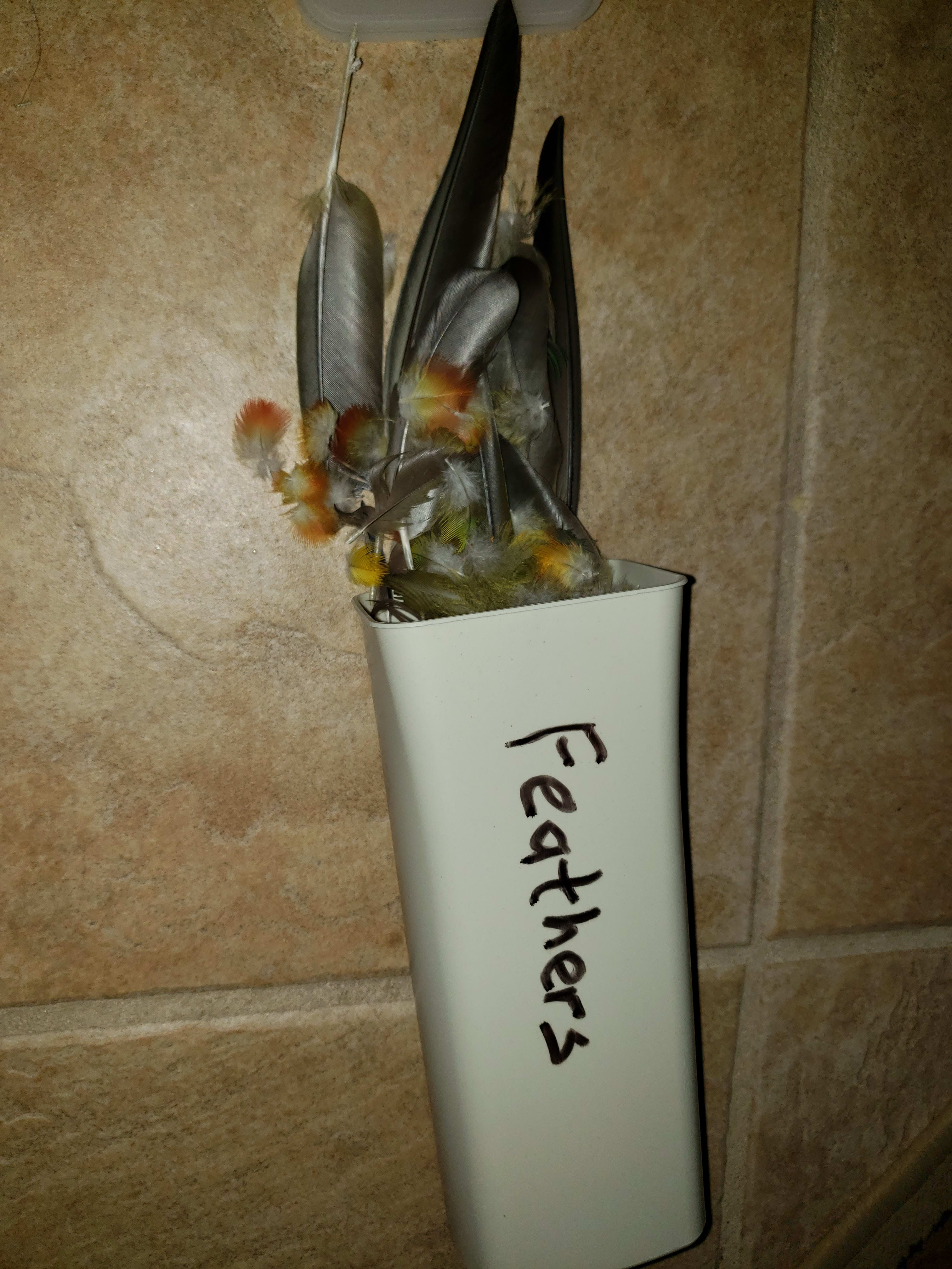 @tinamarie1974 Embarrassing yes. That container is just to capture the ones my pet conure drops while in the Livingroom. I have a lage zip lock bag full with enough to make a small pillow. He molts every year and I’ve had him for about 9 years or more. So this is just a small portion.