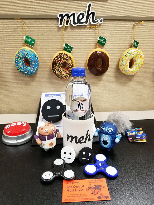Here’s some assorted Meh gear I have a work, along with some random tchotchkes. I have other Meh stuff at home and other random tchotchkes.