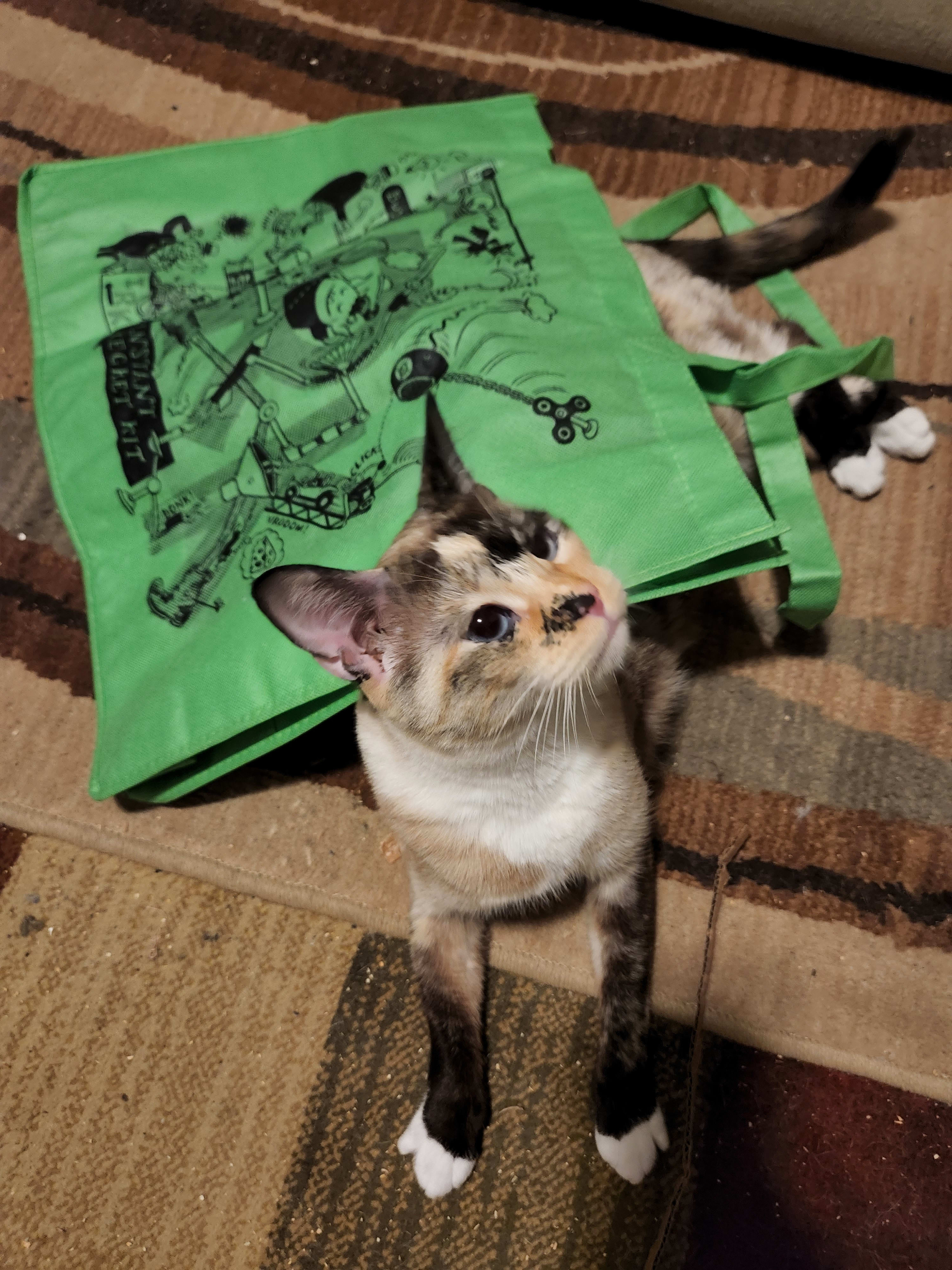 Just got my red Fuku bag, thank you! I put it out of my cat’s reach so he won’t bite it, but he was verrrry interested in the manila envelope it came in. It must smell like Ash!