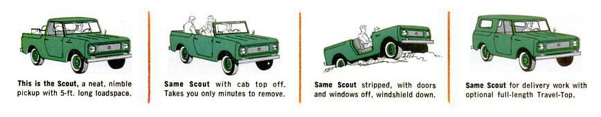 Even more appealing was the price: $1,598 base for the 2-wheel drive model (about $17k today) and $1,948 for the 4-wheel drive (about $21k today). The average car in 1961 cost something like $2,700 (about $29k today). Within a month of launching the Scout, International Harvester had to double production to meet demand.