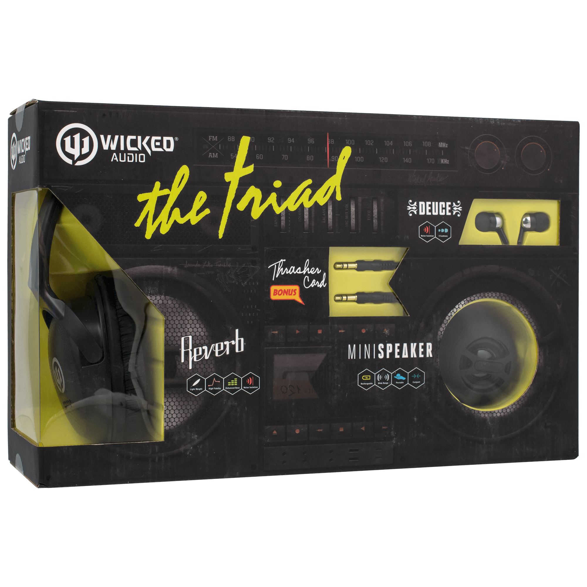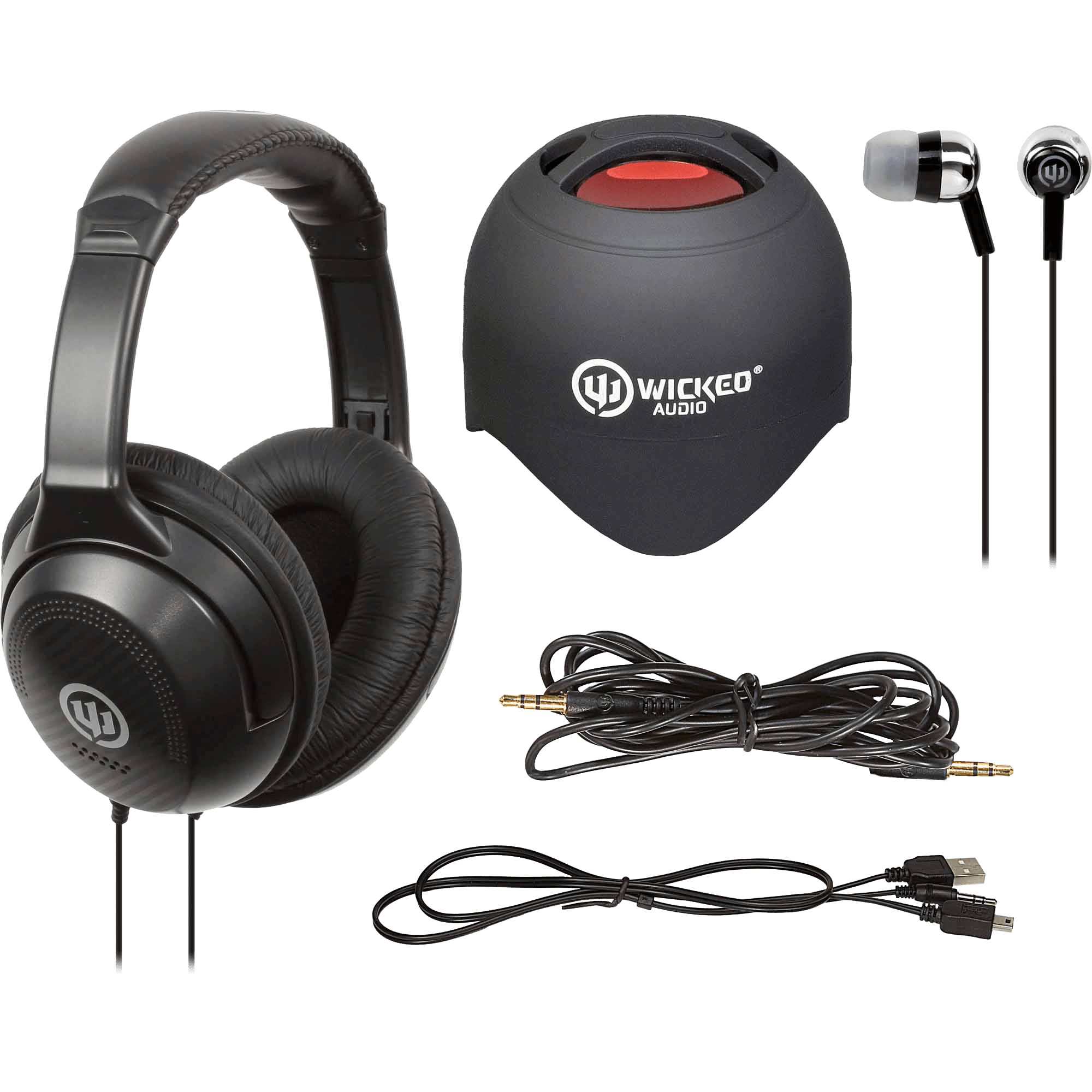 Specs ====- Model: WI-8240- Condition: New- Mini Speaker: - Driver: 40mm Neodymium - Sensitivity: 80dB - Frequency: 200Hz - 18KHz - Impedance: 4 Ohms - Battery capacity: 400mAH - Play time: 4 - 6 hours - Cable length: 32in- Reverb: - Driver: 40mm Neodymium - Sensitivity: 107dB - Frequency: 20Hz - 20KHz - Impedance: 64 Ohms - Cable length: 4ft - Plug material: gold plated - Weight: 7.2oz- Deuce: - Driver: 10mm Neodymium - Sensitivity: 102dB - Frequency: 20Hz - 20KHz - Impedance: 16 Ohms - Cable length: 4ft What’s in the Box? ====1x Headphones1x Earbuds1x Small earbud tips1x Medium earbud tips1x Large earbud tips1x Mini USB to USB and Aux cable for speaker1x Aux cablePictures====BoxStuffFrontSideFirePrice Comparison====$24.85 at Amazon
