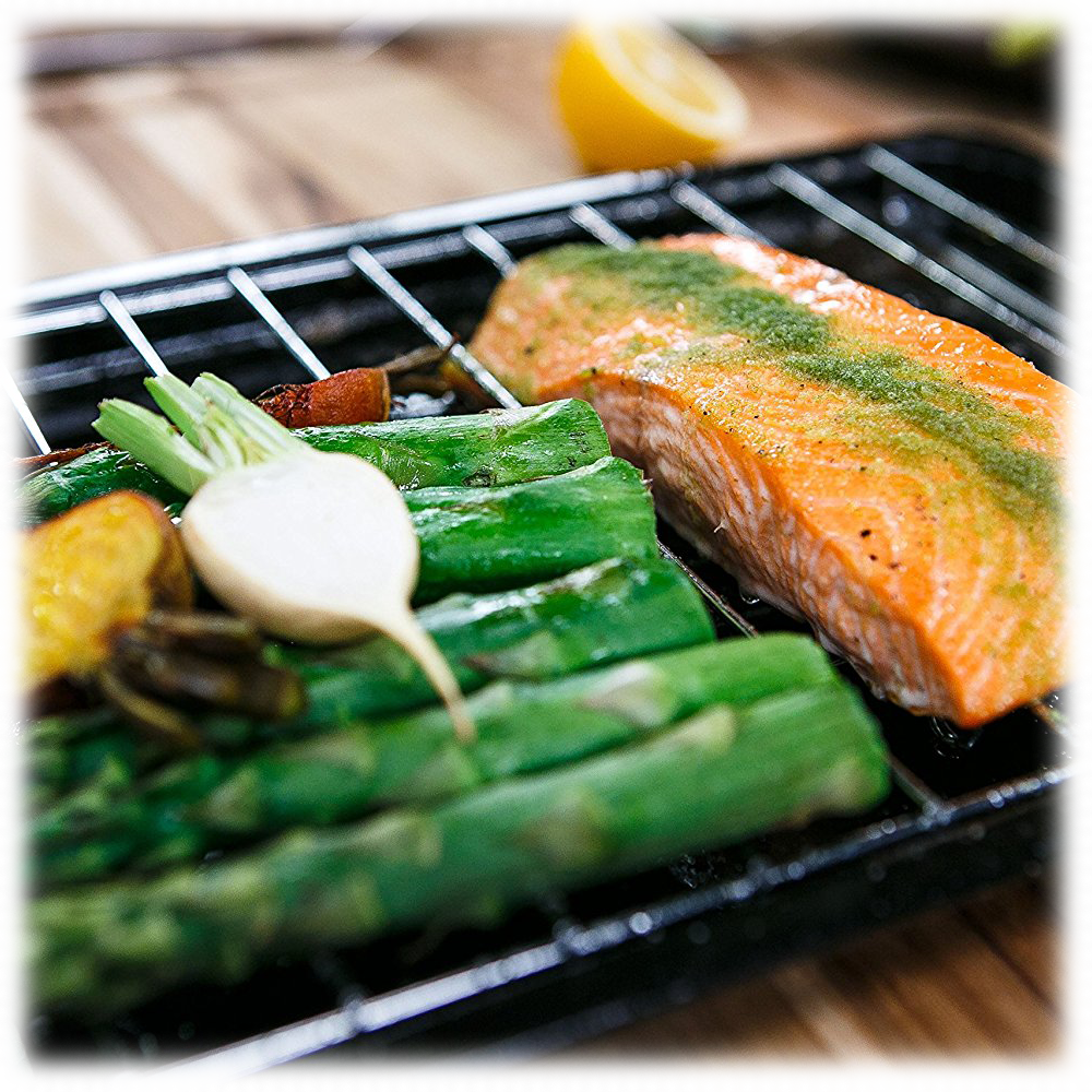 (d) although I have never tried it, you COULD probably broil seafood in it (like salmon, trout, etc) or oven-fry (like fish cakes, Maryland Chicken, etc) BUT, it IS NOT a pressure cooker like a stovetop unit. There is not enough liquid to steam crab legs or lobsters without adding liquid to the bottom tray, and even then, I think they might burn before the water reaches 212℉ (unless you only use very little water, at which point it might all boil out too fast, defeating the purpose…).
