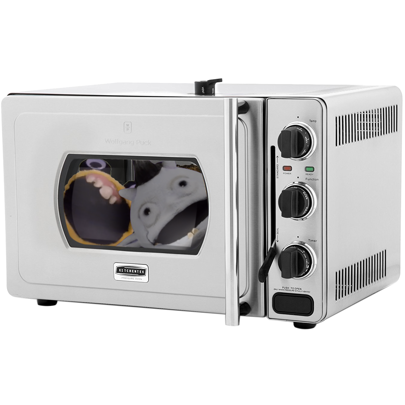 I got a similar kind of thing off Amazon Vine onetime, have to find the name of it, it has a lid like a slow-cooker instead of a door like this has but can also be used to sear and bake. It’s the 2nd best kitchen appliance I ever got. Apart from the slow-cooker aspect you can bake dry in it, only with like 1/8 the volume of the oven so it heats up faster with less energy and makes an amount more suited to OUR consumption, plus does it in a removeable pot so you can take things to the potluck or wherever.