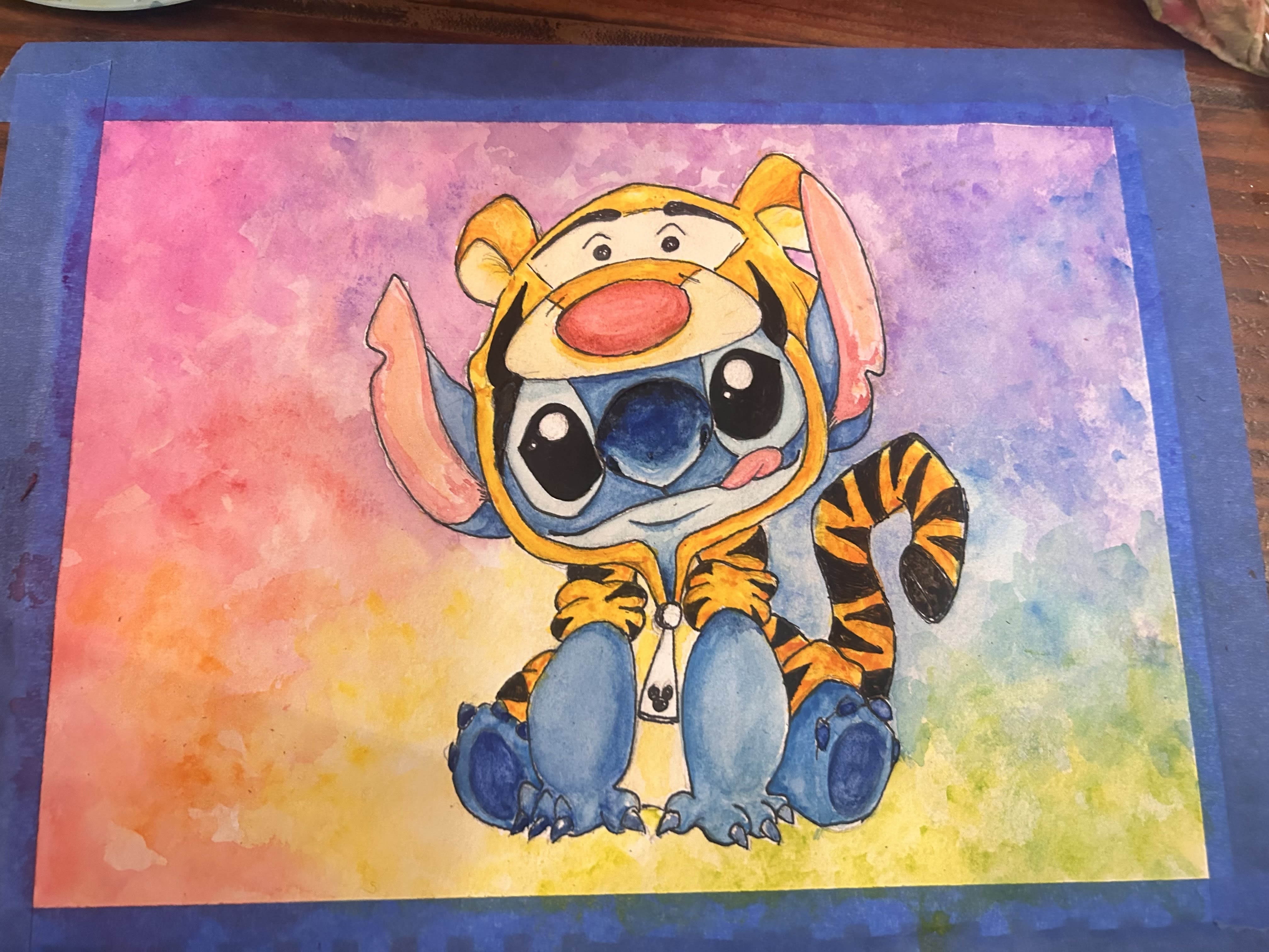 It’s been a weird day. Was able to get some plant therapy with my mom. Then I decided to put away all the screens and make a painting for our friends’ daughter who is turning 11 tomorrow. She loves stitch and Tigger so I combined them. I think she’ll like it. I still have details to add but the paper was too wet so I’m off for sushi and I’ll finish it when I get home.