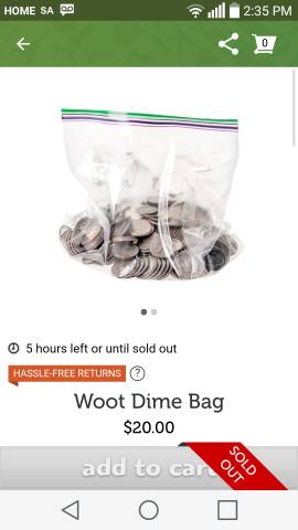 The Flash Deals thing is dumb, but Woot’s had a long history of strange and/or unique items. I don’t think it’s a bad thing – it hearkens back to their quirky early days (no offense, @snapster). The fact so many people would buy them is another story (bag of dimes, anyone?) but I’m pleased that they’re still offering “conversation” items.