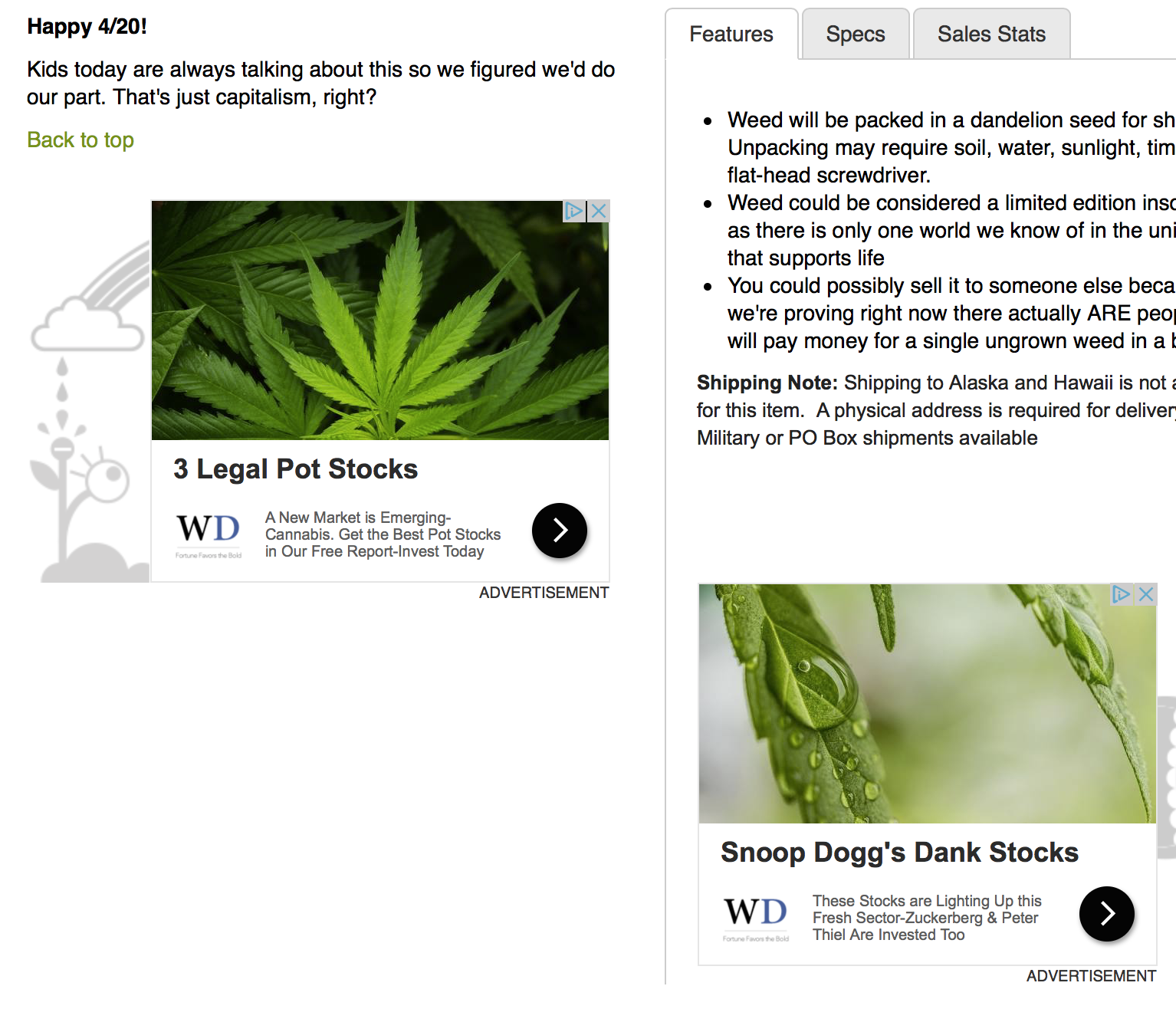 I’m jealous they seem to have gotten actual marijuana (stock) ads:
