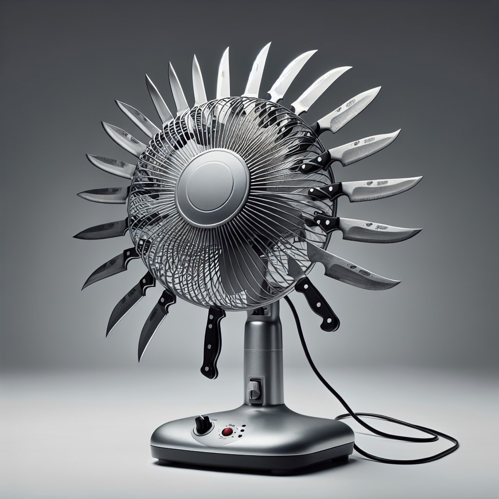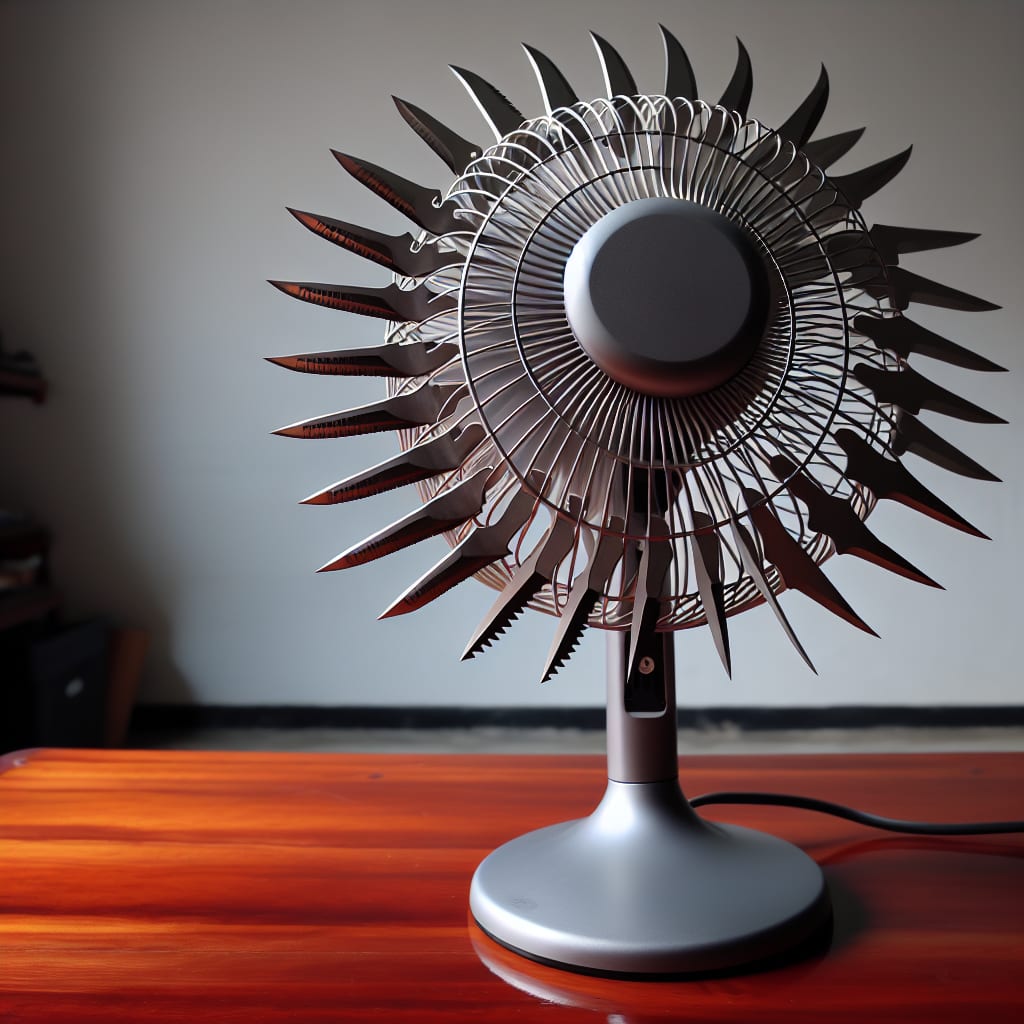 @yakkoTDI /showme a desk fan with blades that are made of knives